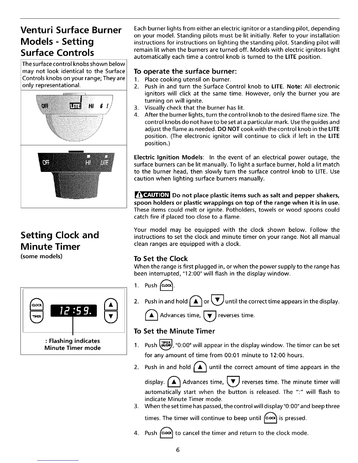 instructions to set the dock and minute timer on your range. Not all manual