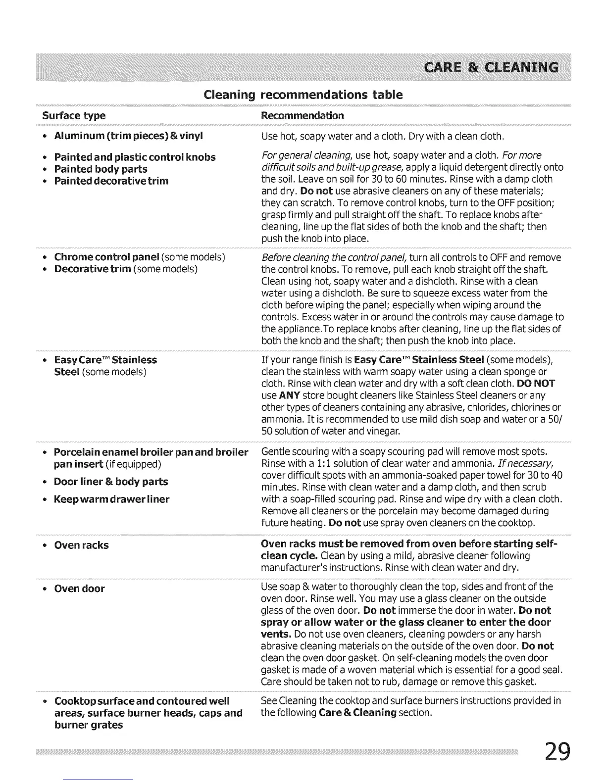 areas, surface burner heads, caps and the following Care &Cleaning section.
