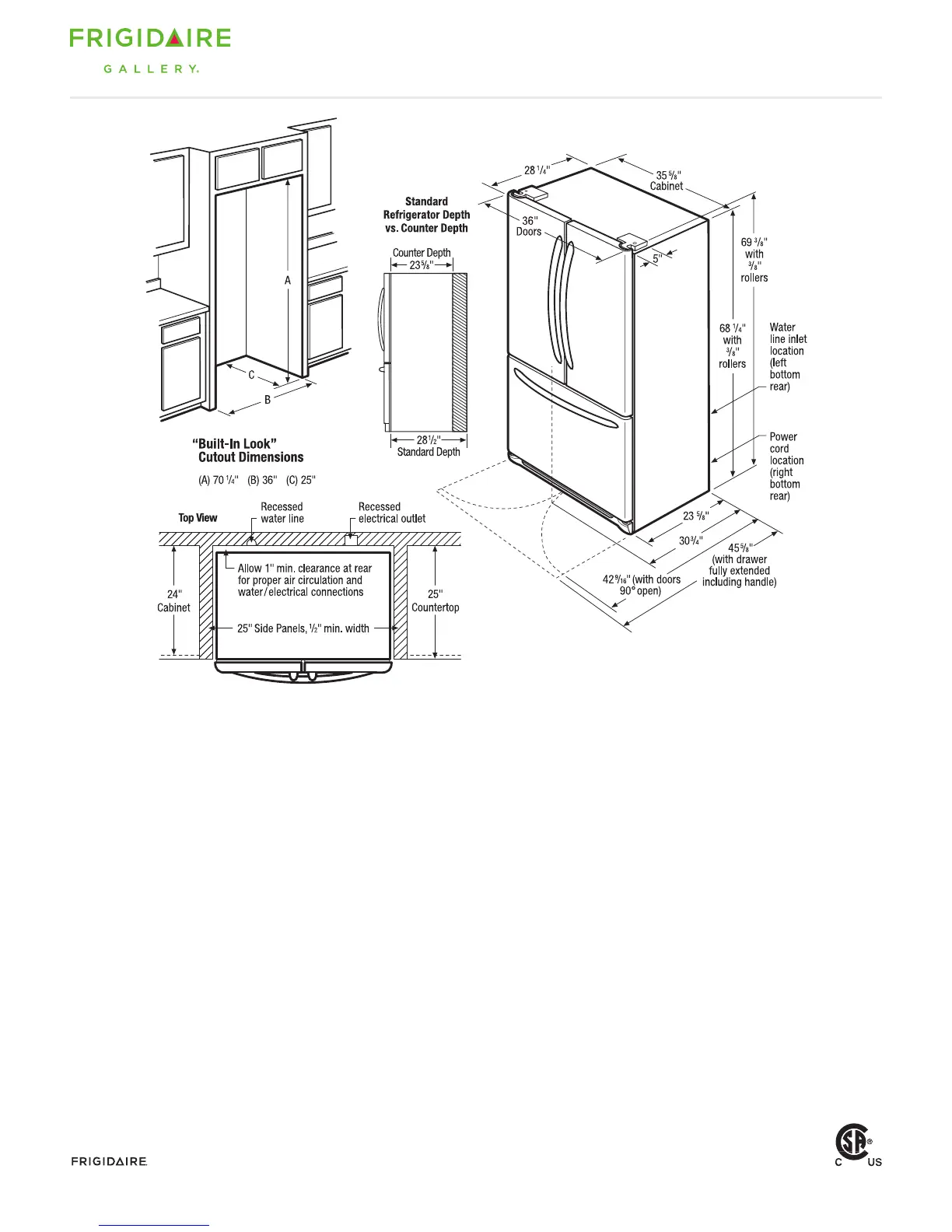 Minimum opening of 70-1/4" H x 36" W x 25" D required to allow for