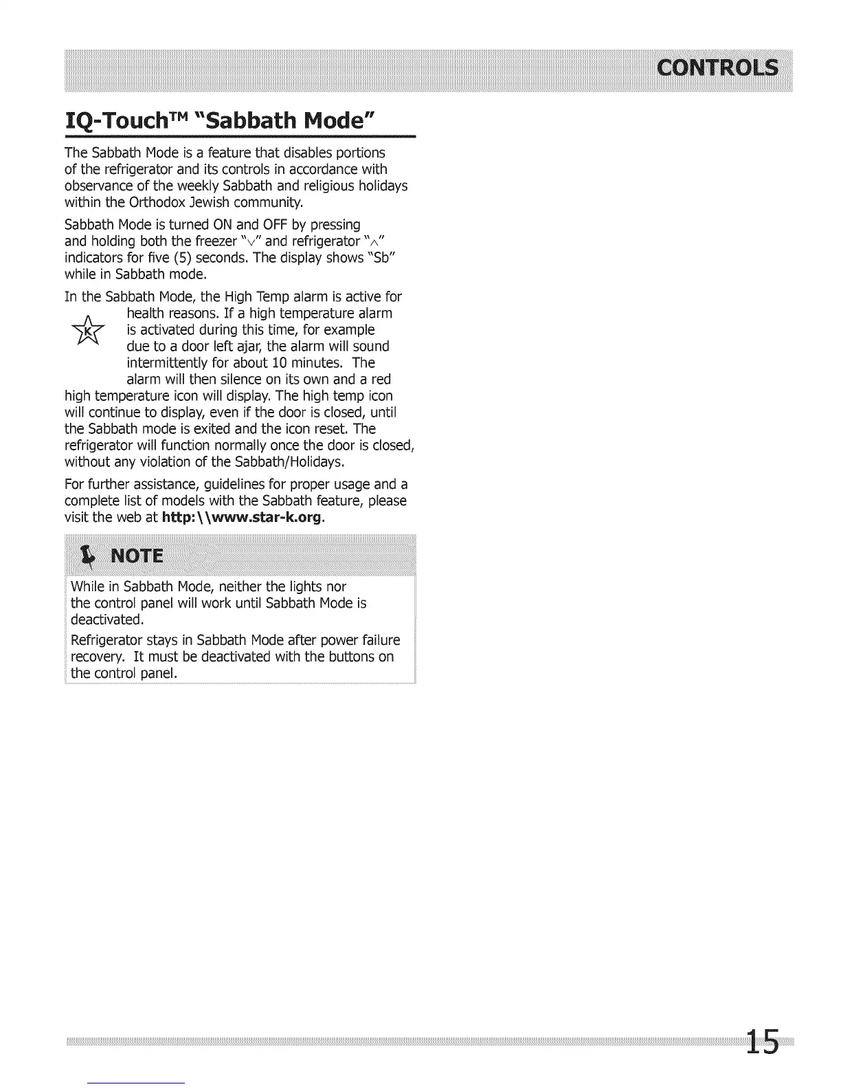 In the Sabbath Mode, the High Temp alarm is active for