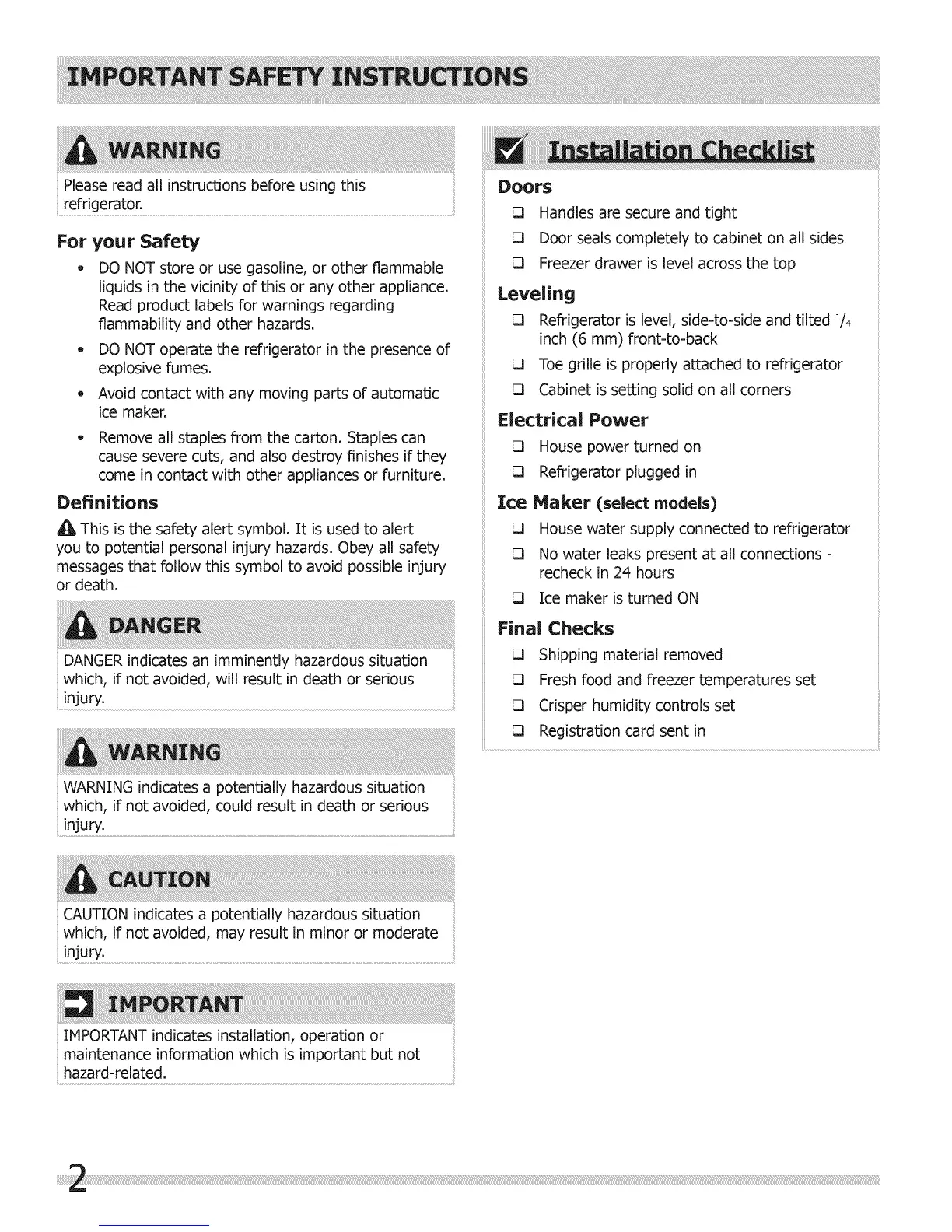 13 Toe grille is properly attached to refrigerator