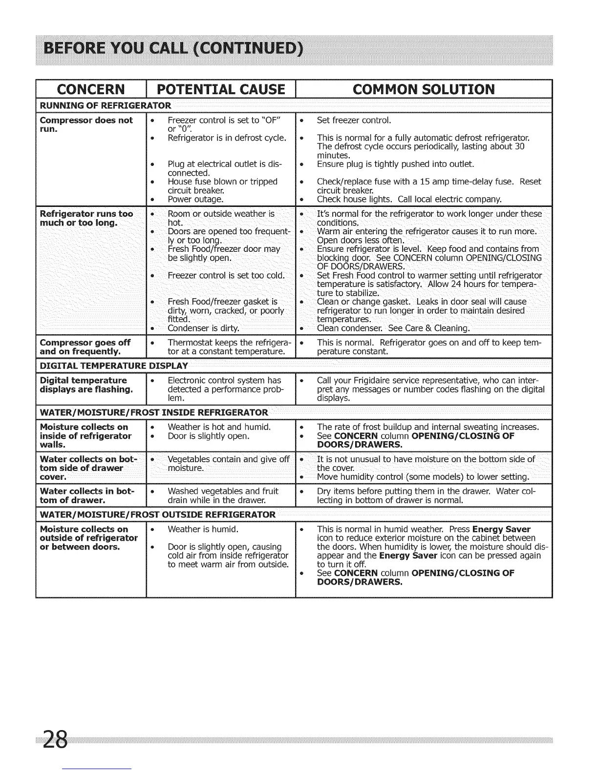 Digital temperature _ • Electronic control system has * Call your Frigidaire service representative, who can inter-