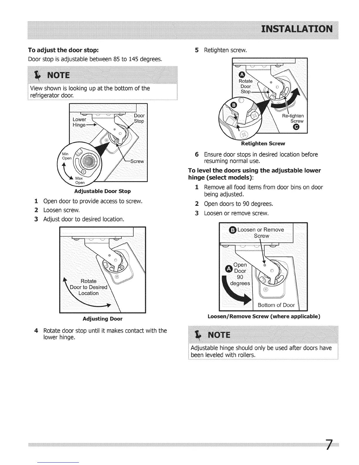 To adjust the door stop: