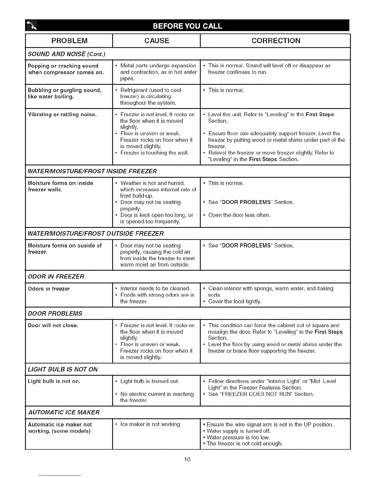 • Freezer is touching the wail • Relevel the freezer or move h'eezer Mightly. Refer to