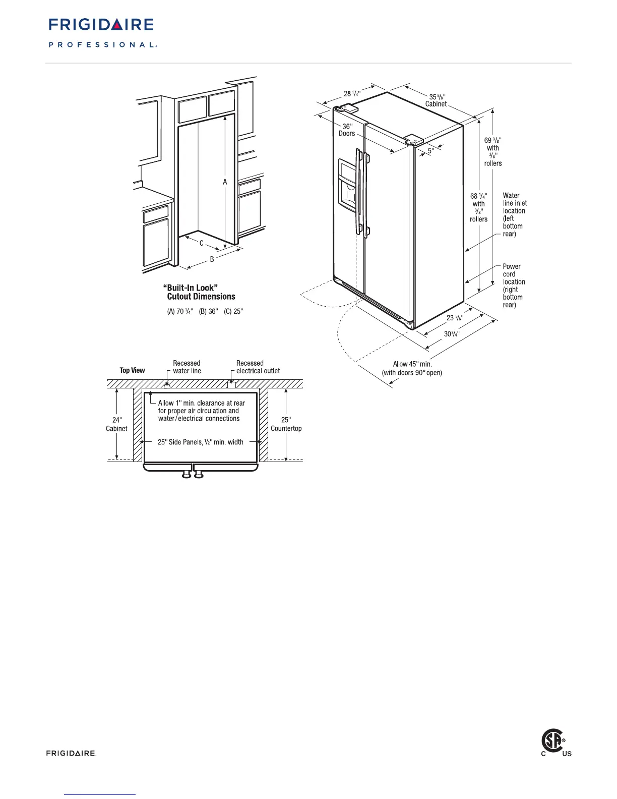 Minimum opening of 70-1/4" H x 36" W x 25" D required to allow for