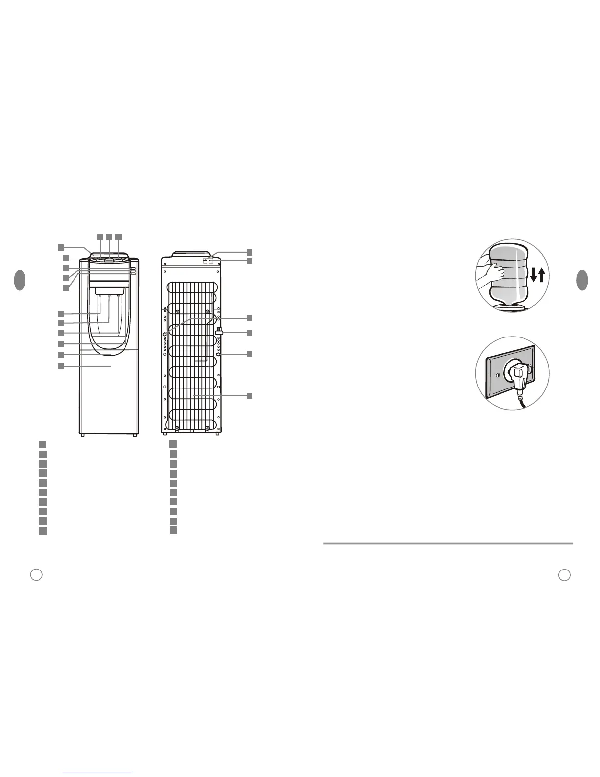 Do not plug the power cord or push the red switch until all water runs out from