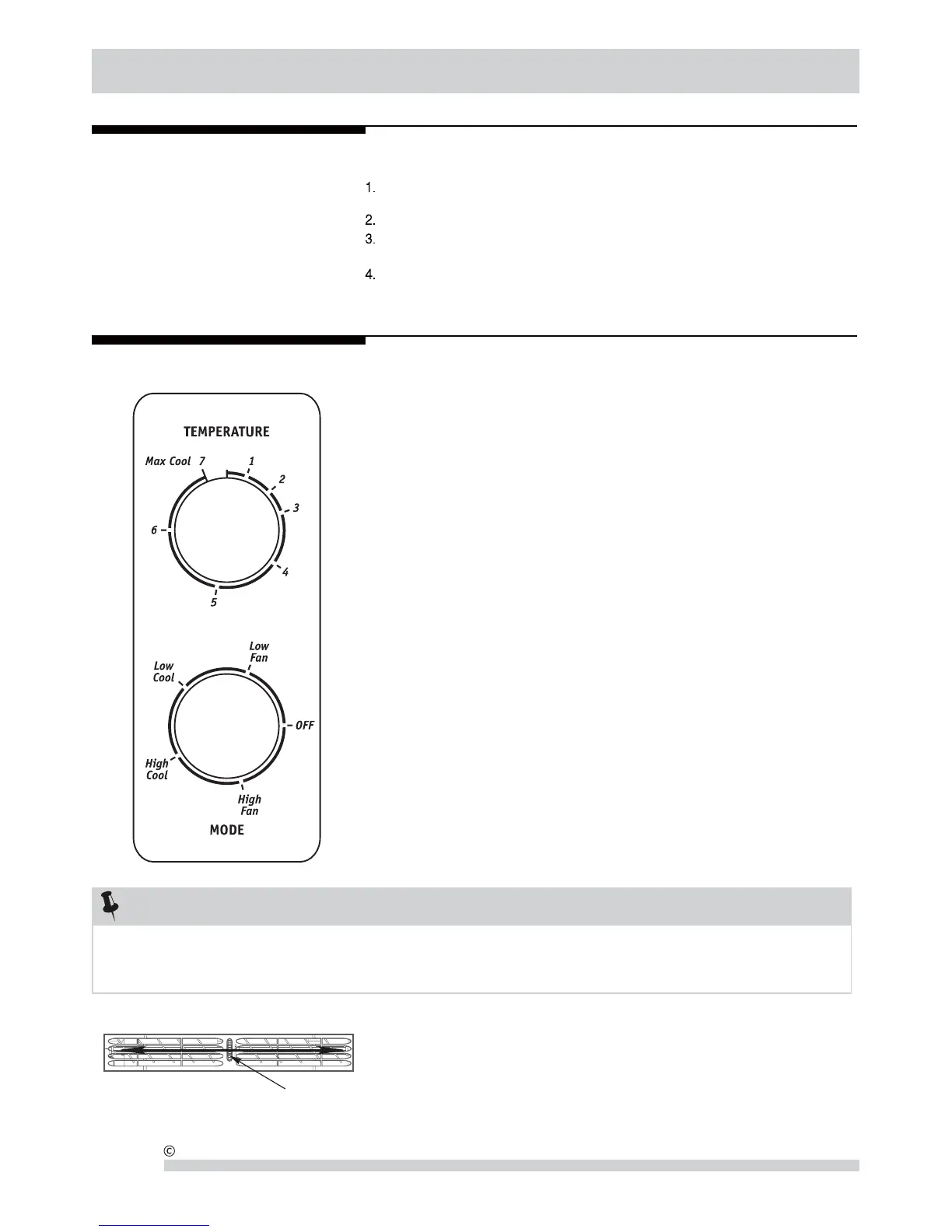 La configuración de frío deseada es seleccionada rotando la rueda MODE al lugar apropiado.