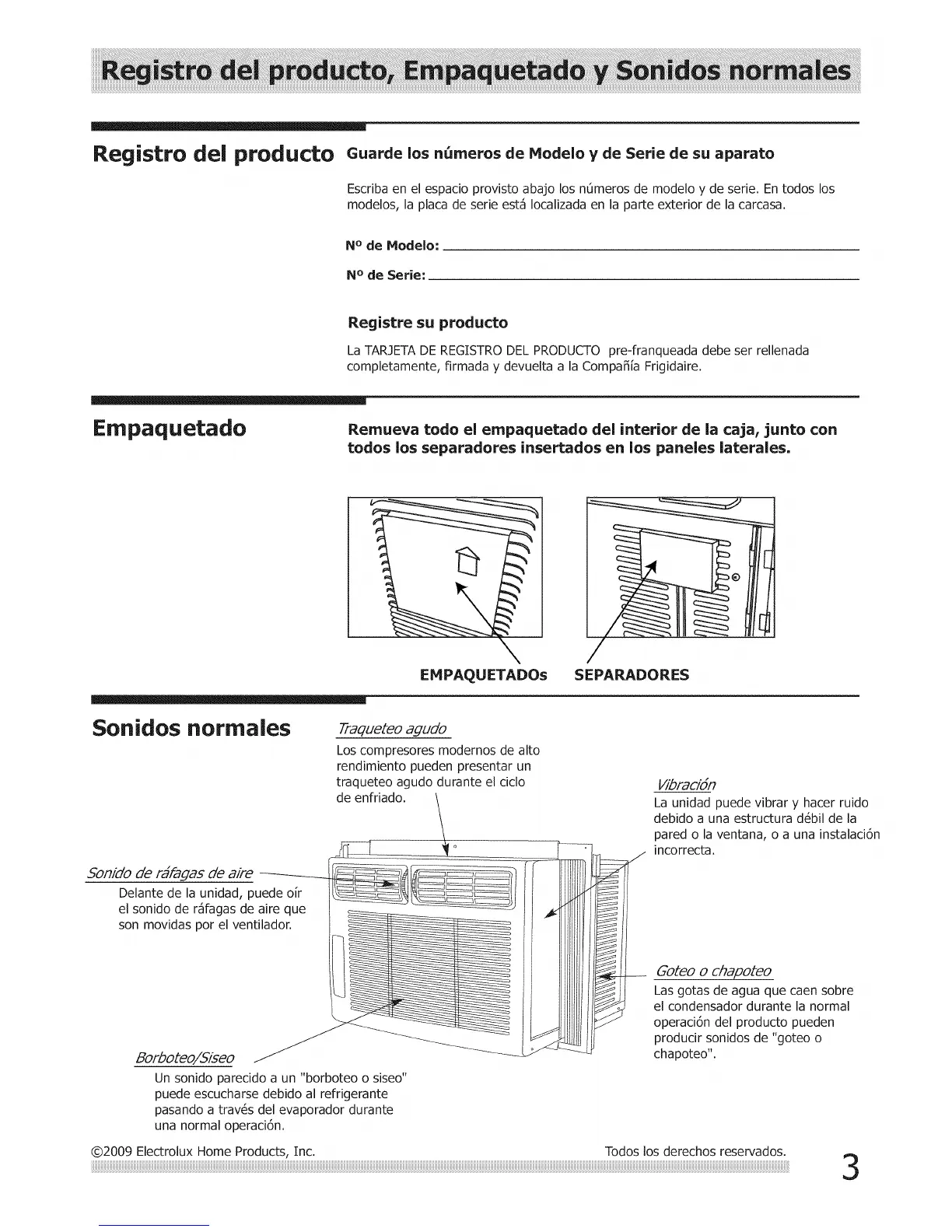 02009 Electrolux Home Products, Inc. Todos los derechos reservados.