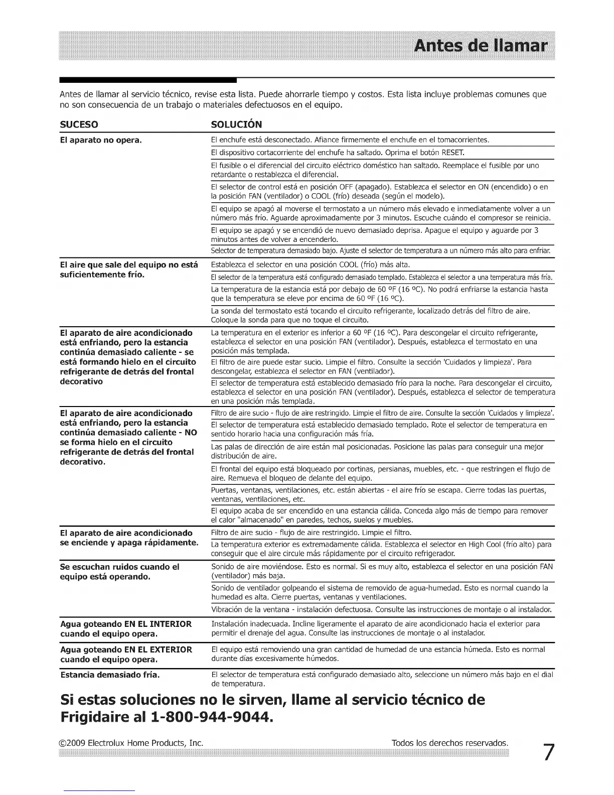 @2009 Electrolux Home Products, Inc. Todos los derechos reservados.