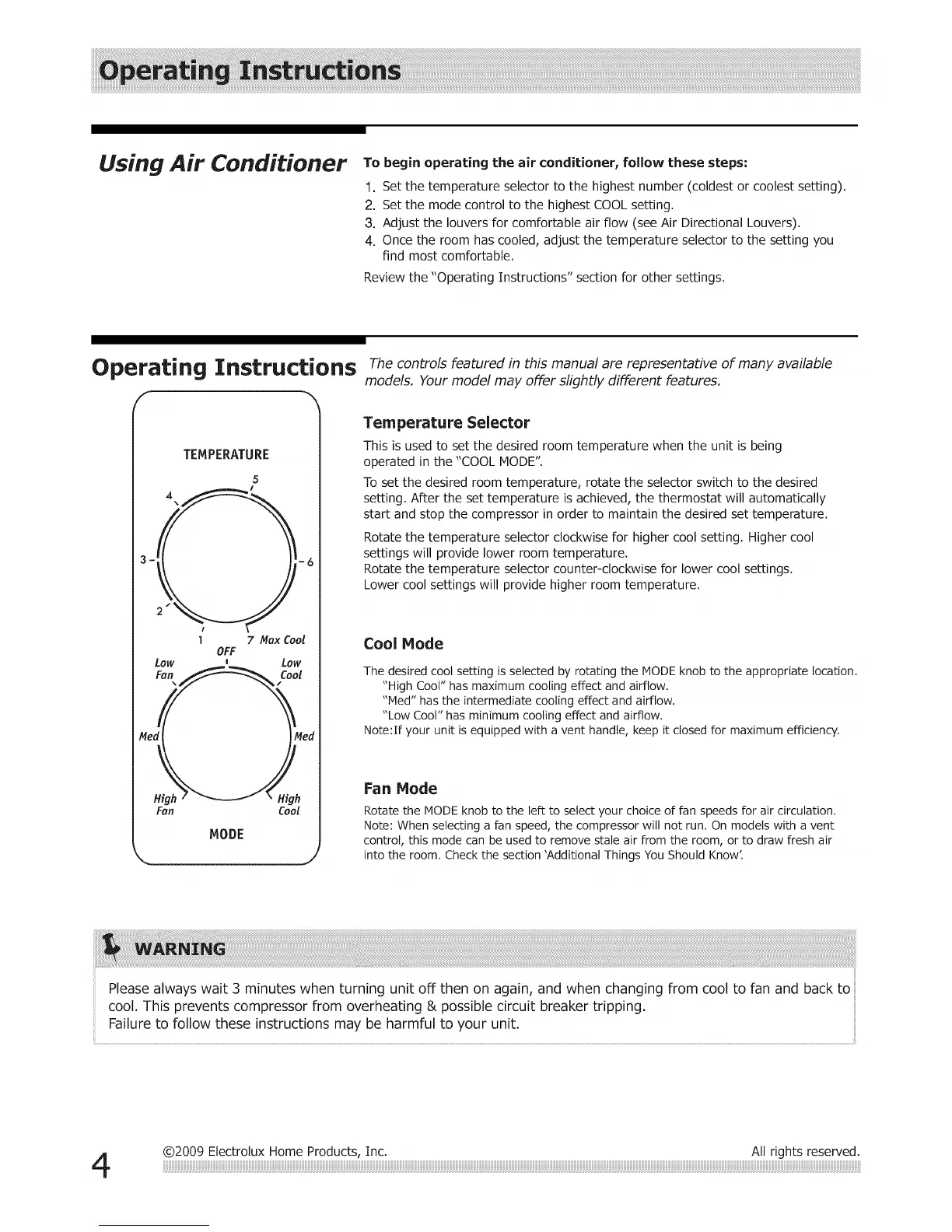 @2009 Electrolux Home Products, Inc. All rights reserved.