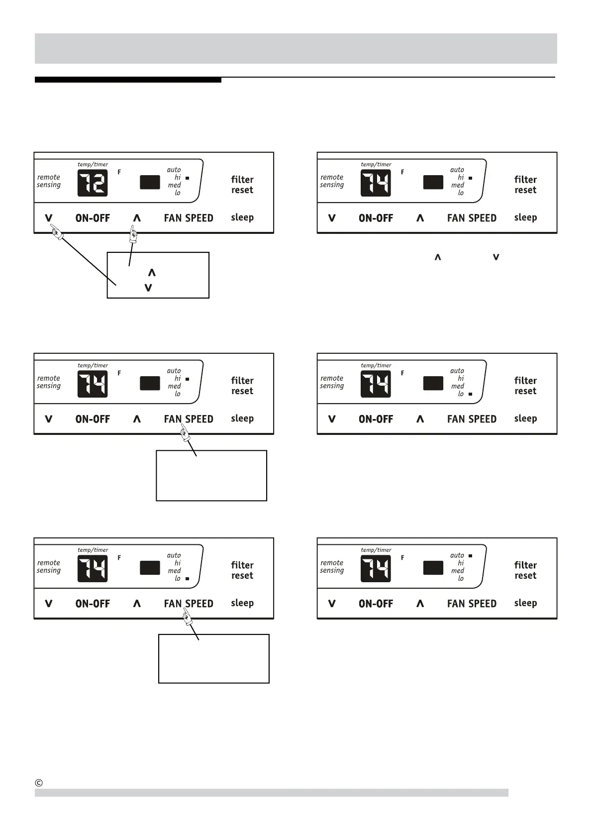 returns to the original set temperature. Press either the fan