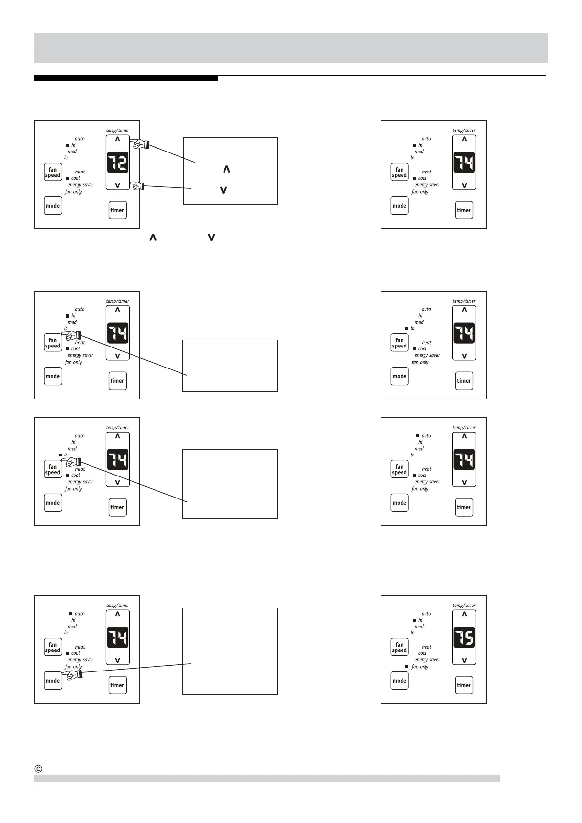 During this function, the display will show the actual room temperature, not the set temperature as in the cooling mode. Fan Only