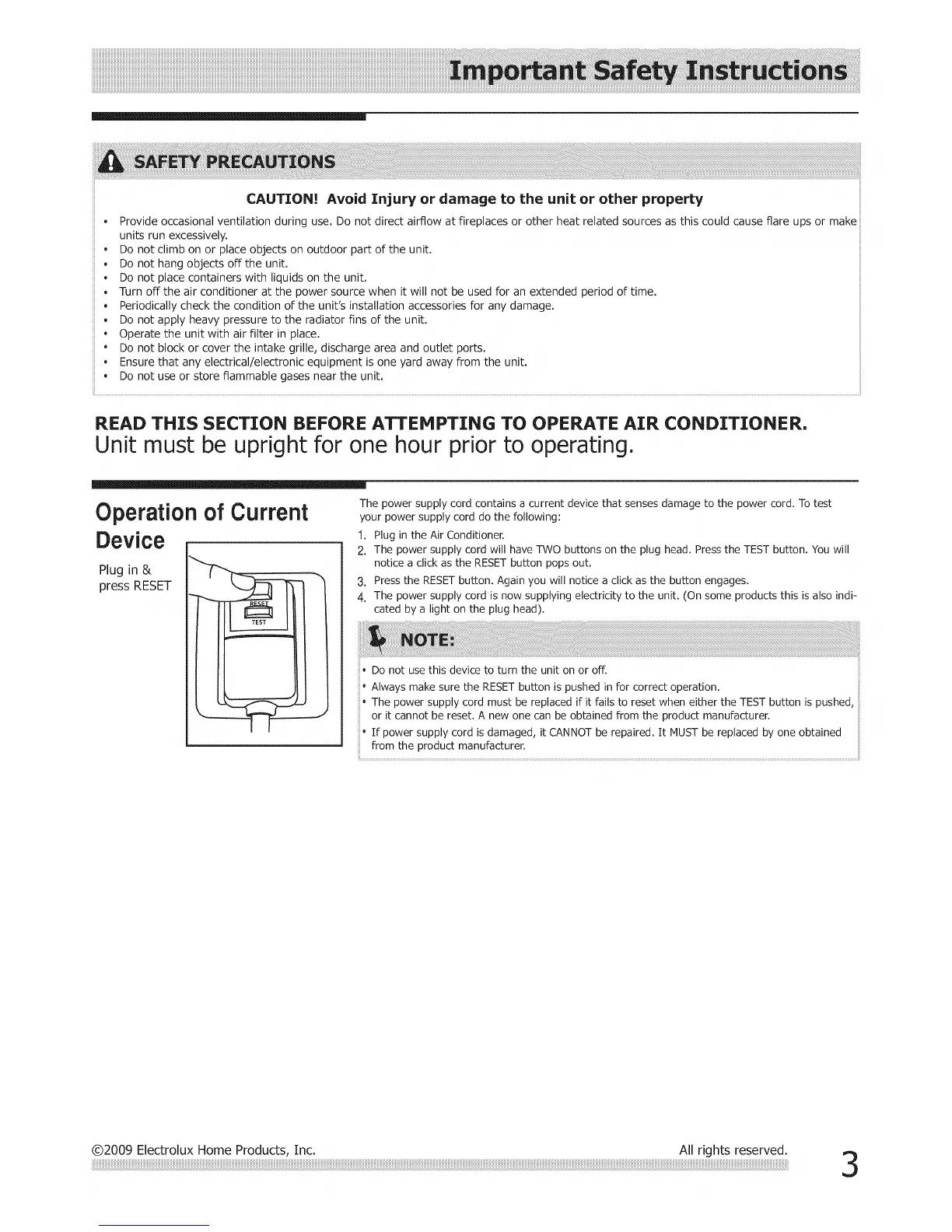 @2009 Electrolux Home Products, Inc. All rights reserved.