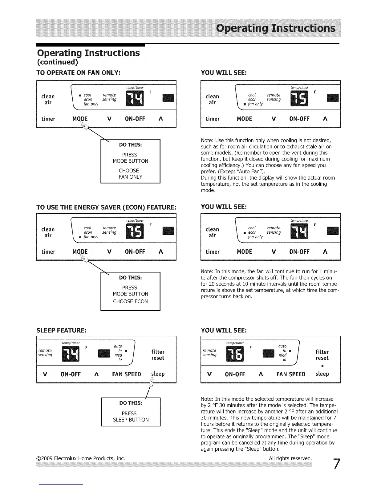 @2009 Electrolux Home Products, Inc. All rights reserved.