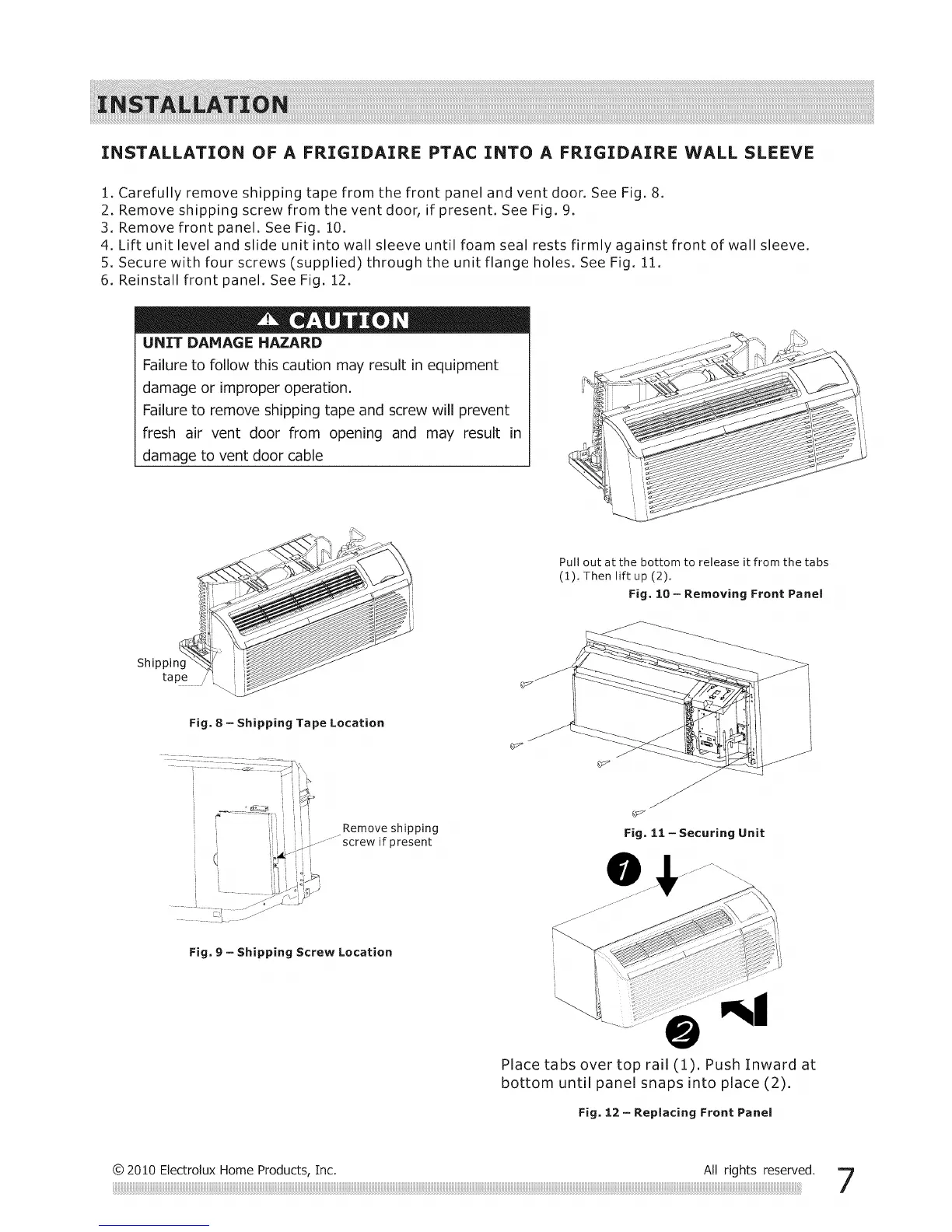 INSTALLATION OF A FRIGIDAIRE PTAC INTO A FRIGIDAIRE WALL SLEEVE