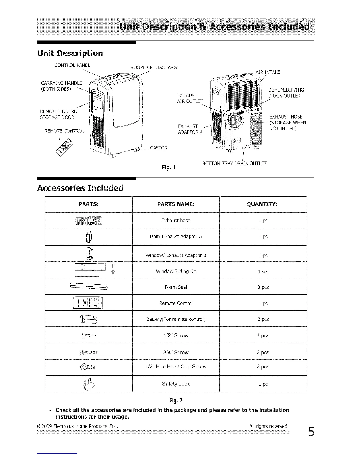 Frigidaire FRA123PT111 - Unit Descnpbon; Accessories Included