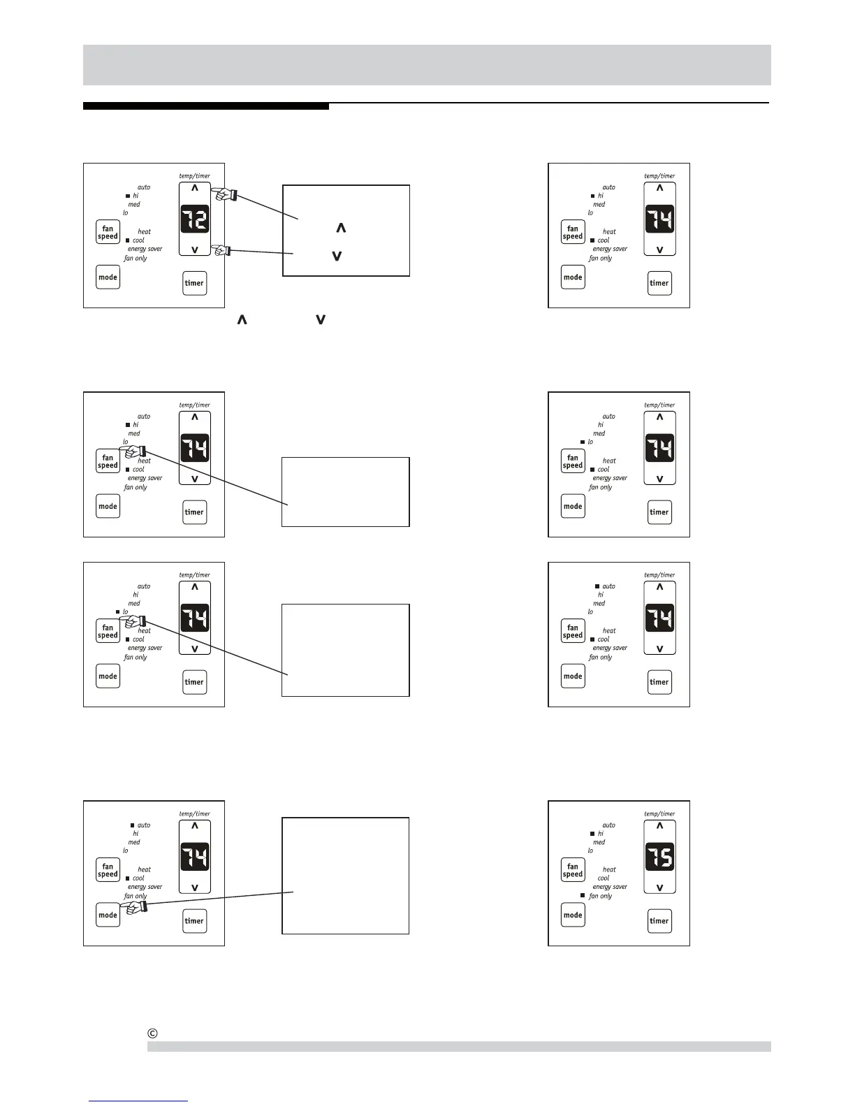 During this function, the display will show the actual room temperature, not the set temperature as in the cooling mode. Fan Only