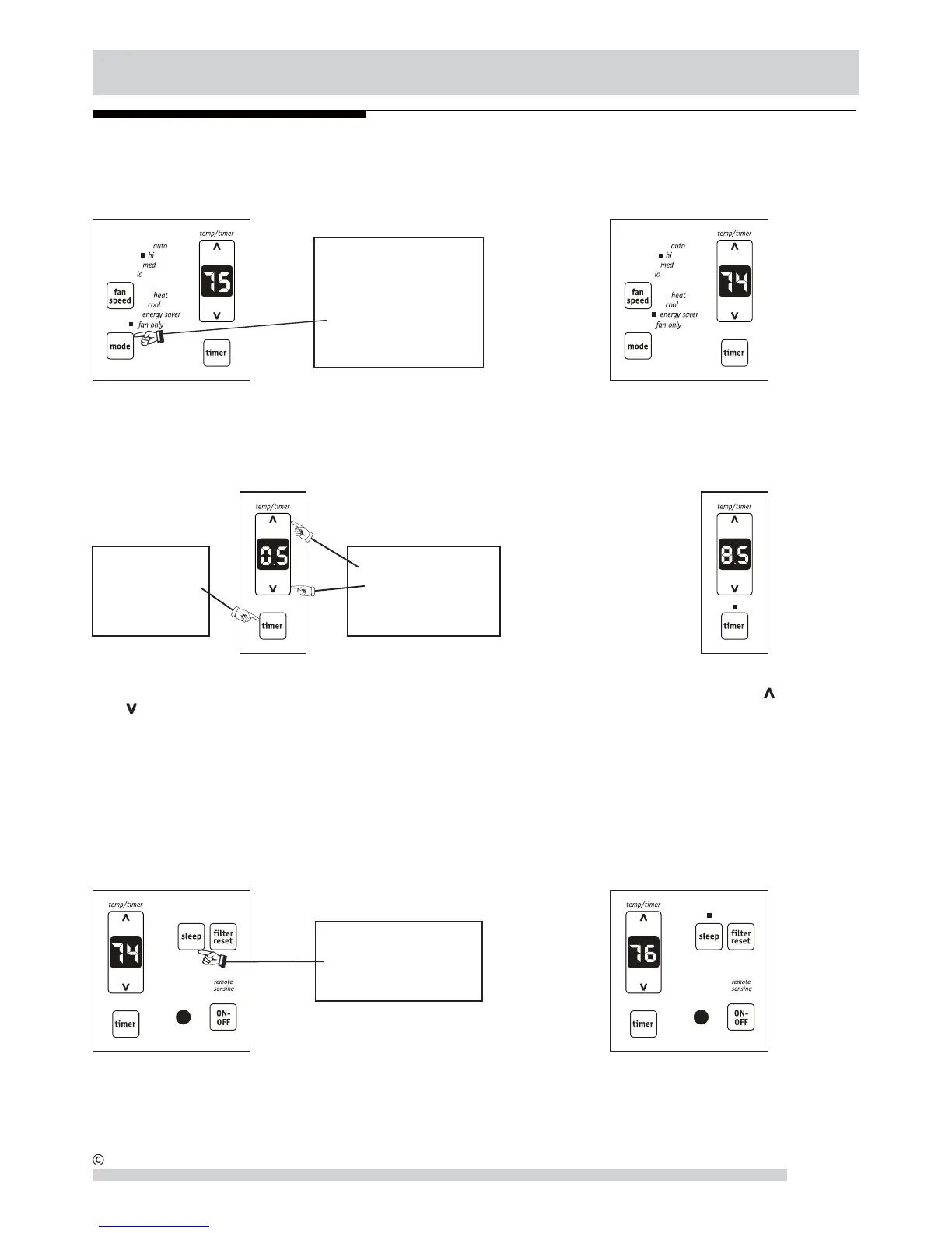 Remarque : Avec ce mode, la température définie augmente de 1,1°C (2 °F) 30 minutes après que vous sélectionnez le mode. La
