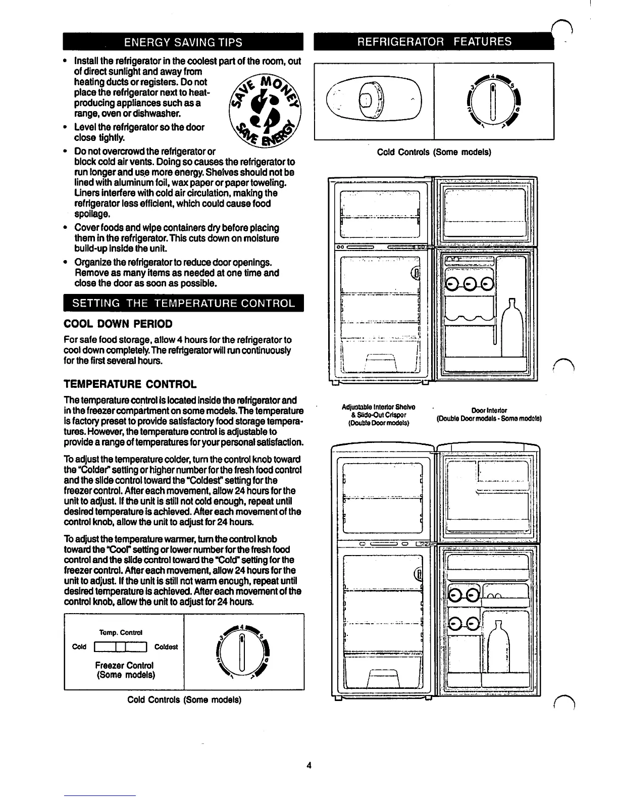 Frigidaire FRC331GM - Energy Saving Tips; Setting the Temperature Control