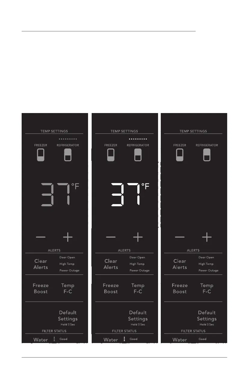 All settings will then be fully lit. Touch the display again to change any setting.