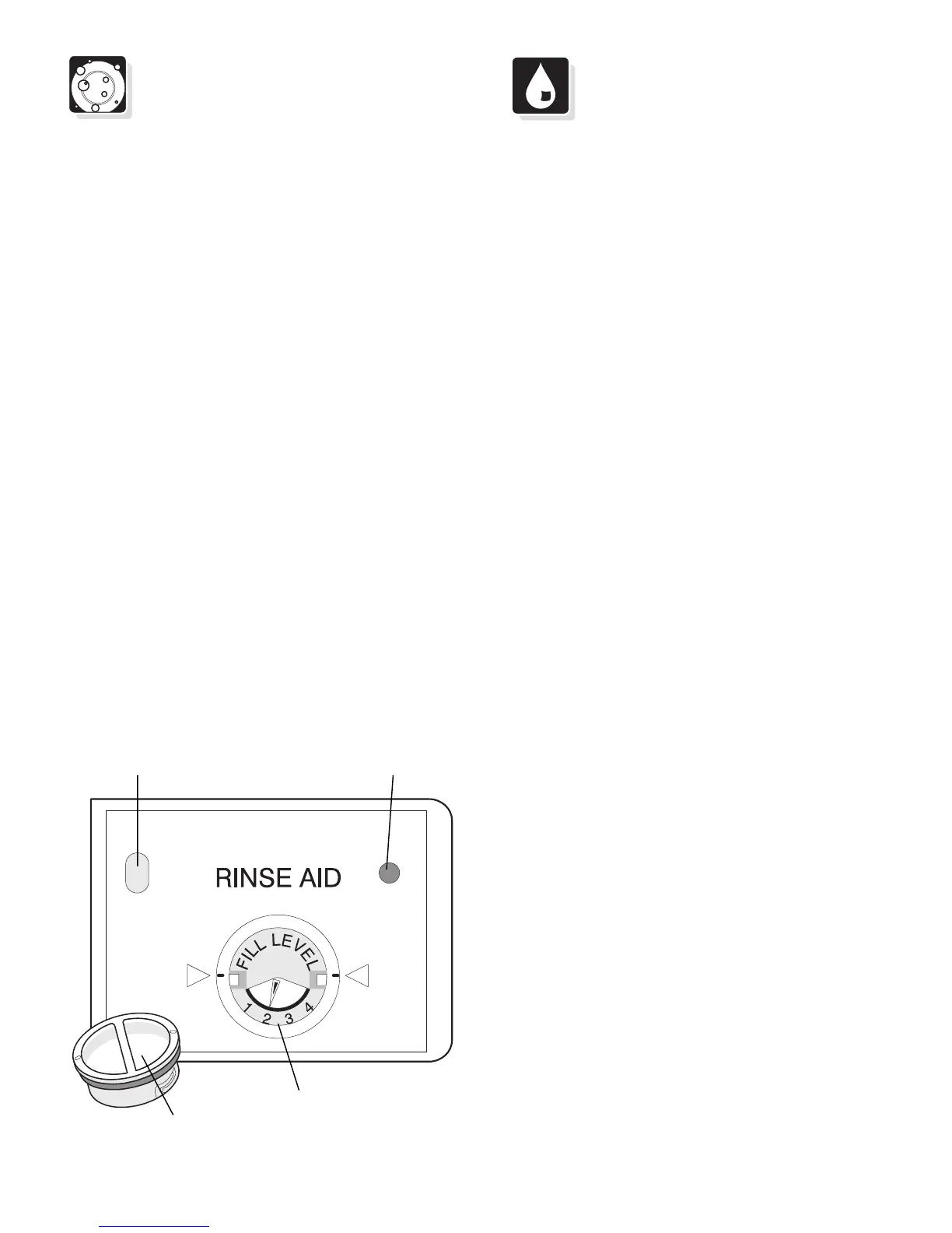 To add liquid rinse aid, turn dispenser cap 1/4 turn