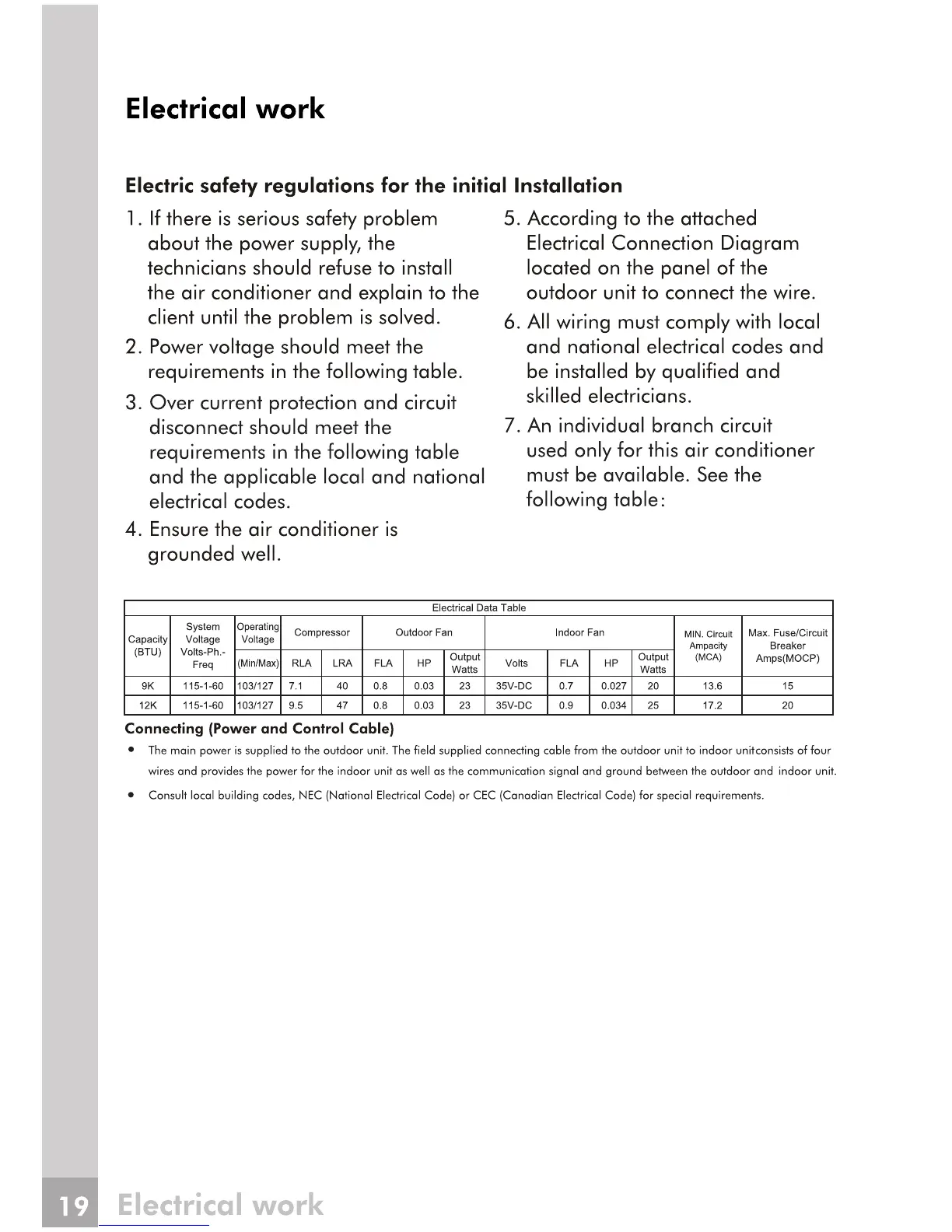Frigidaire FRS093LW1 - Electrical Work; Electrical Safety Regulations