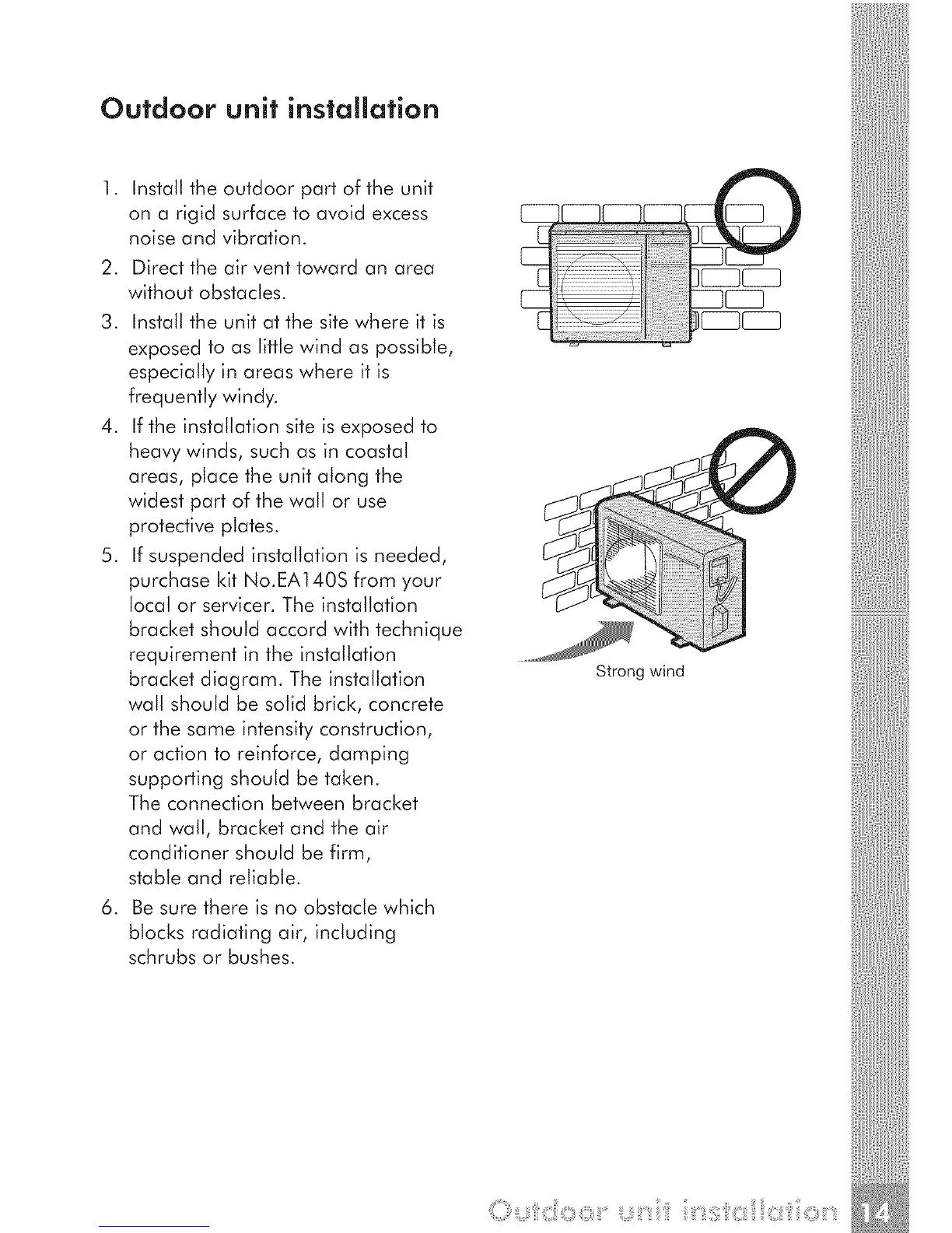 1. Install the outdoor part of the unit