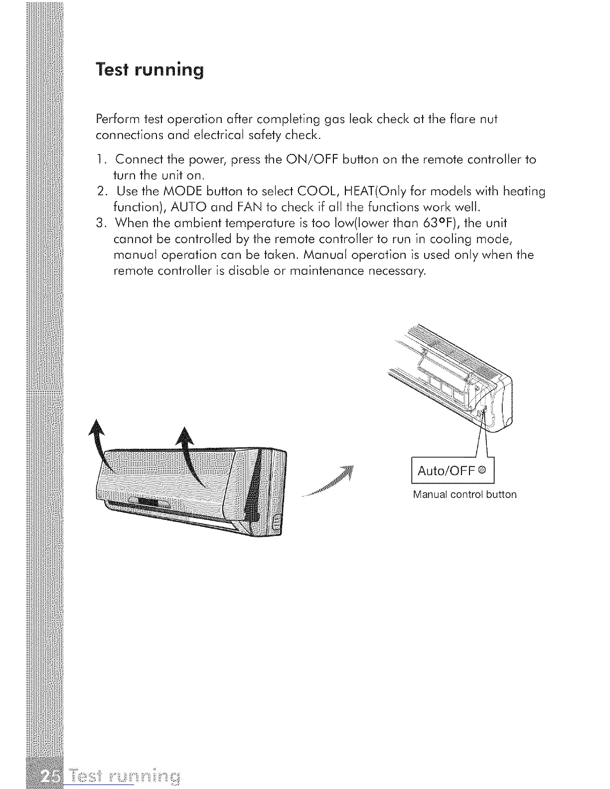 function), AUTO and FAN to check if all the functions work welt.