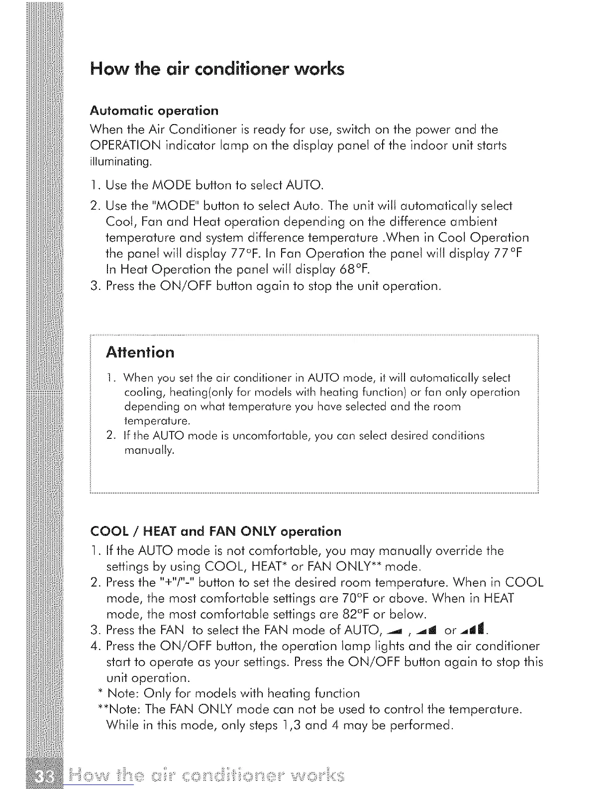 1. When you set the air conditioner in AUTO mode, it will automatically select