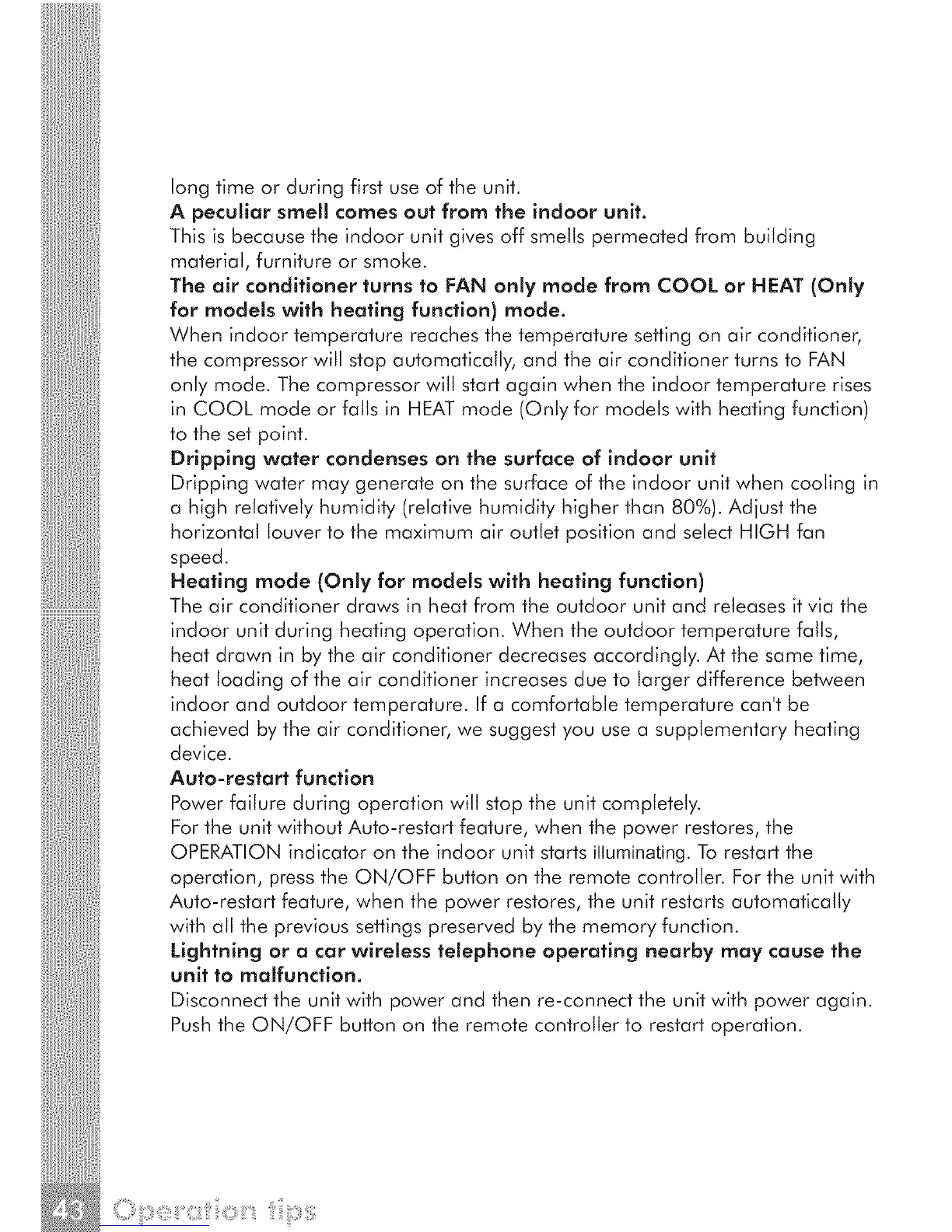 Auto-restart feature, when the power restores, the unit restarts automatically
