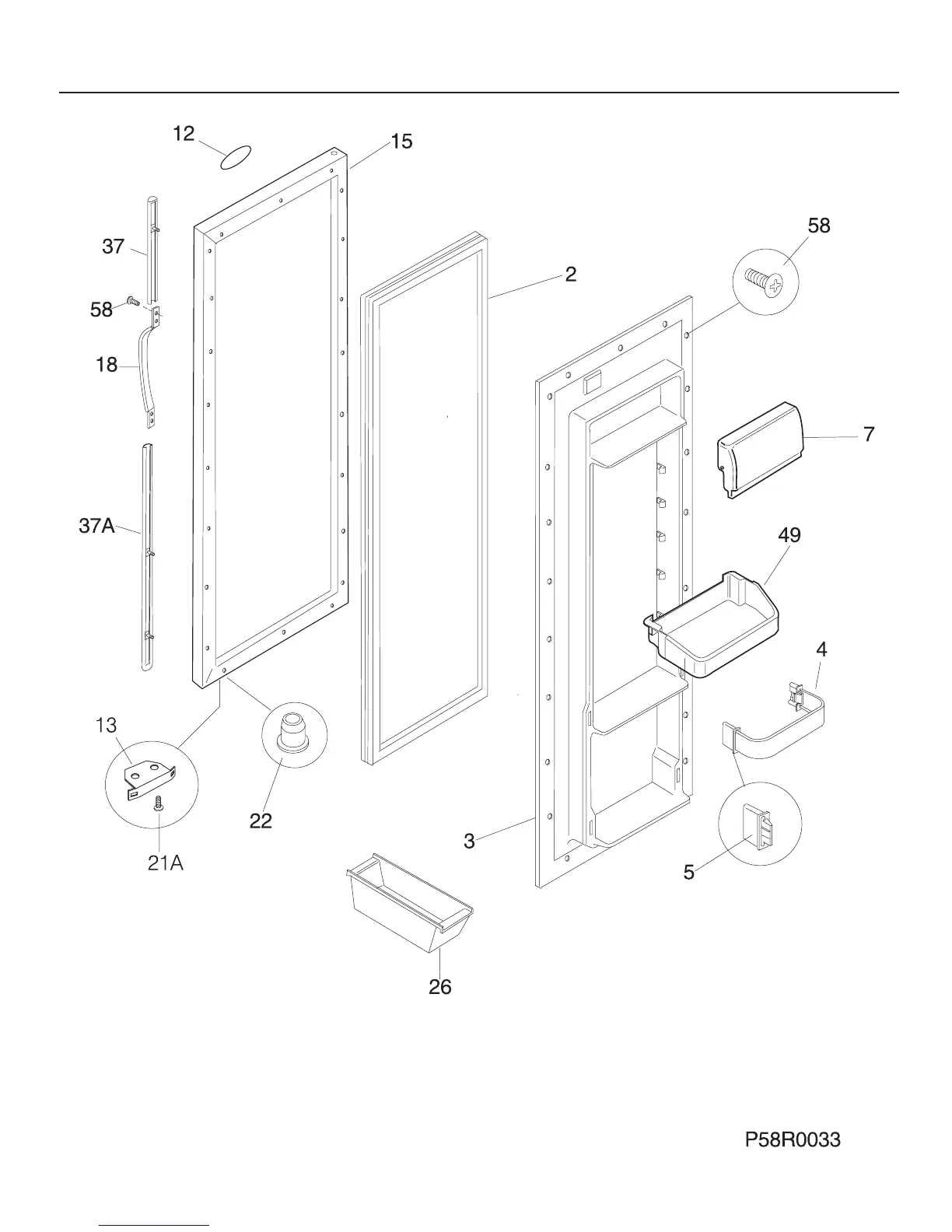 Frigidaire FRS20QRC - Refrigerator Door Components; Refrigerator Door Exploded Diagram