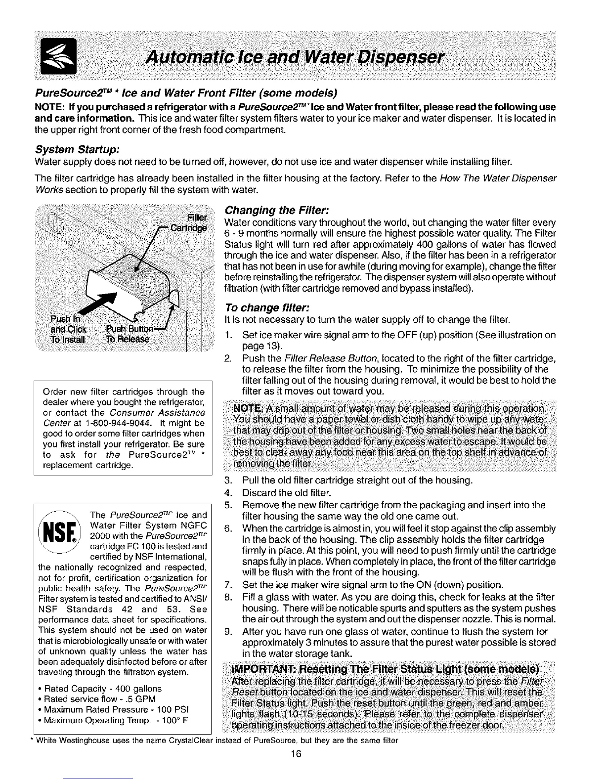 NOTE: _fy_u purchased a refrigerat_r with a PureS_urce2TM__ceand Water fr_nt fi_ter_p_ease read the f____wing use