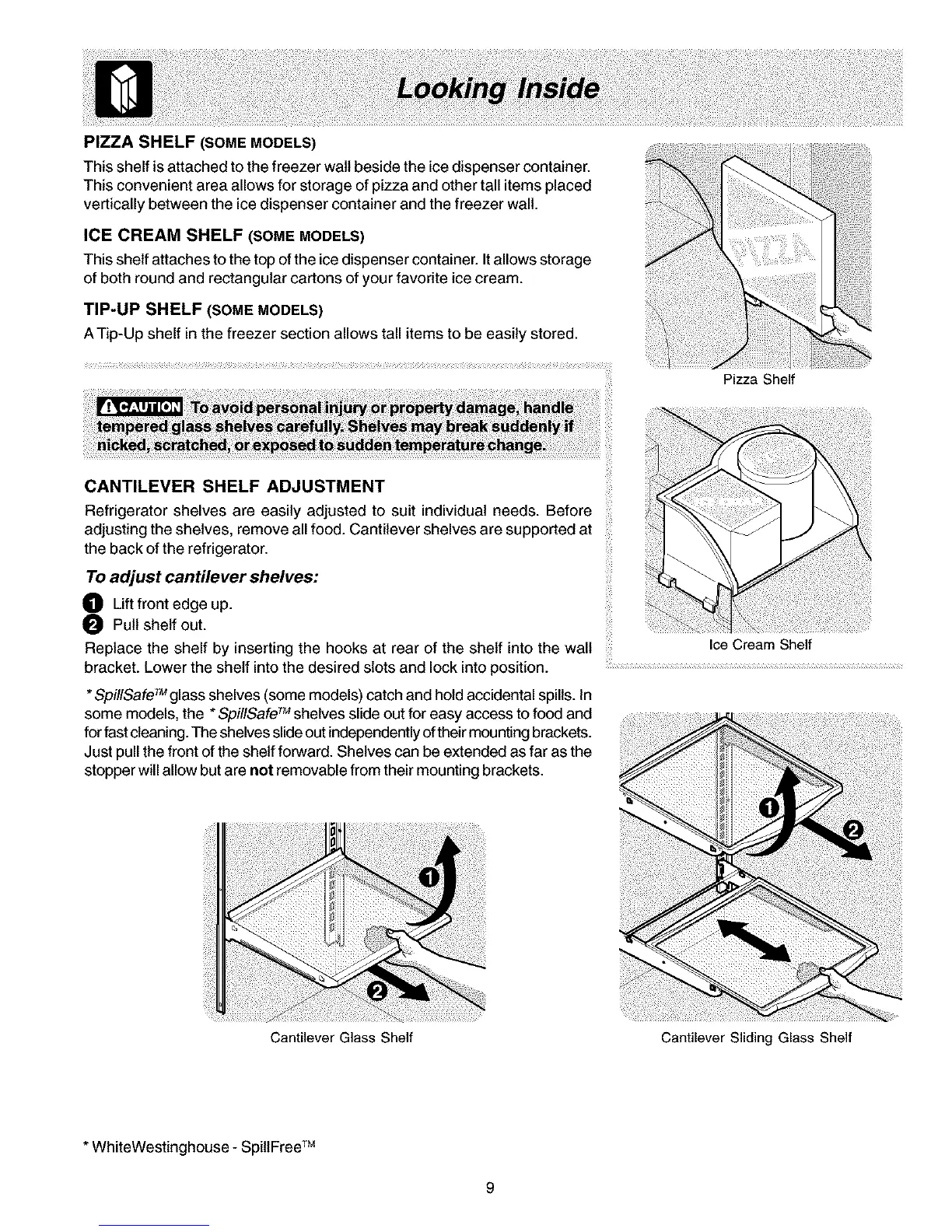 some models, the *SpillSafe TM shelves slide out for easy access to food and