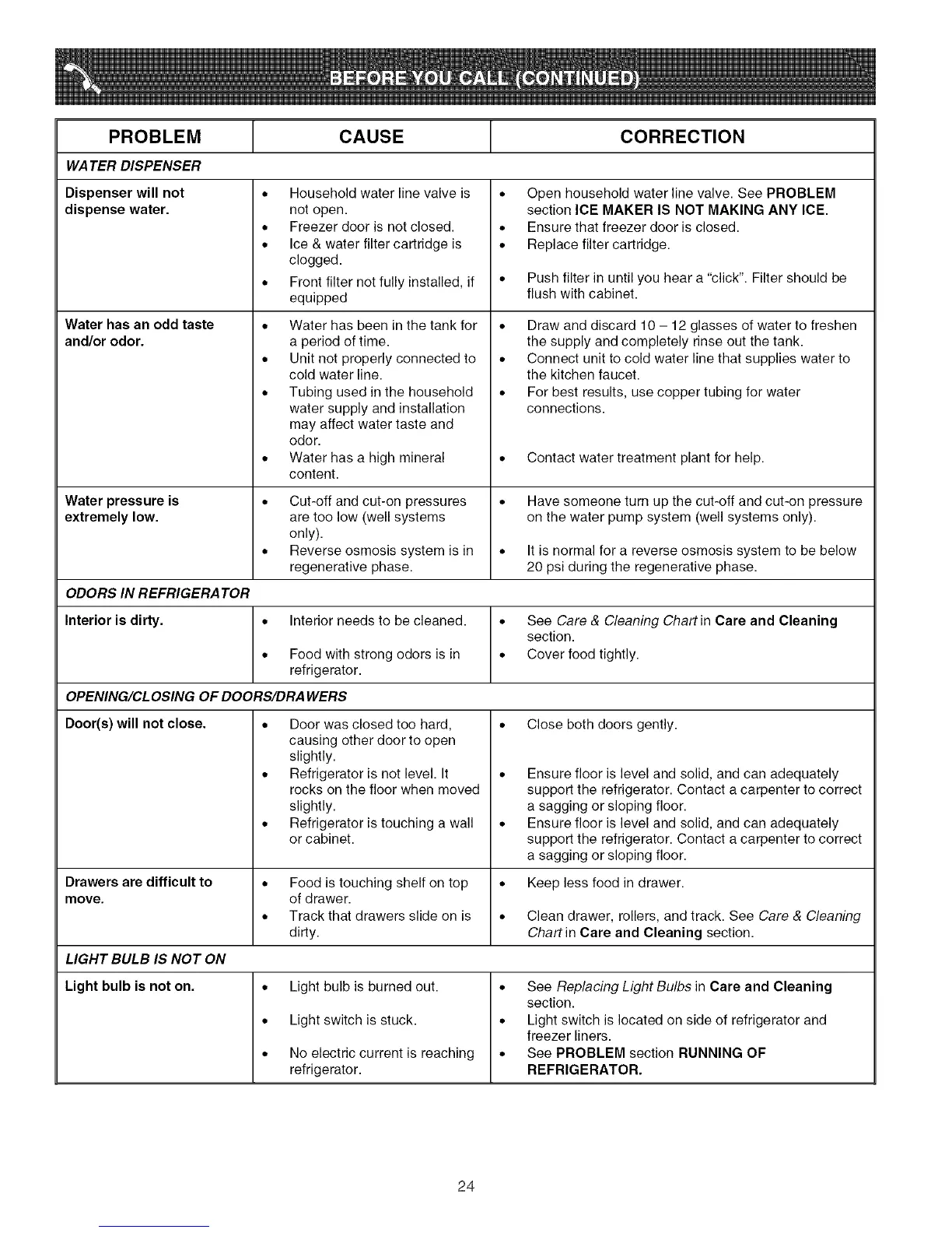 • Open household water line valve. See PROBLEM