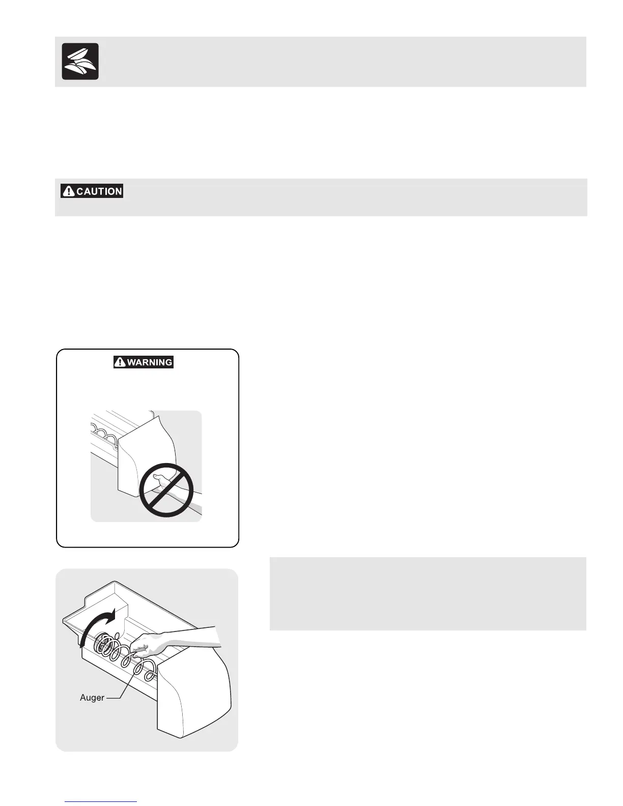 rotate the auger in the ice bin. If the auger is accidentally turned,