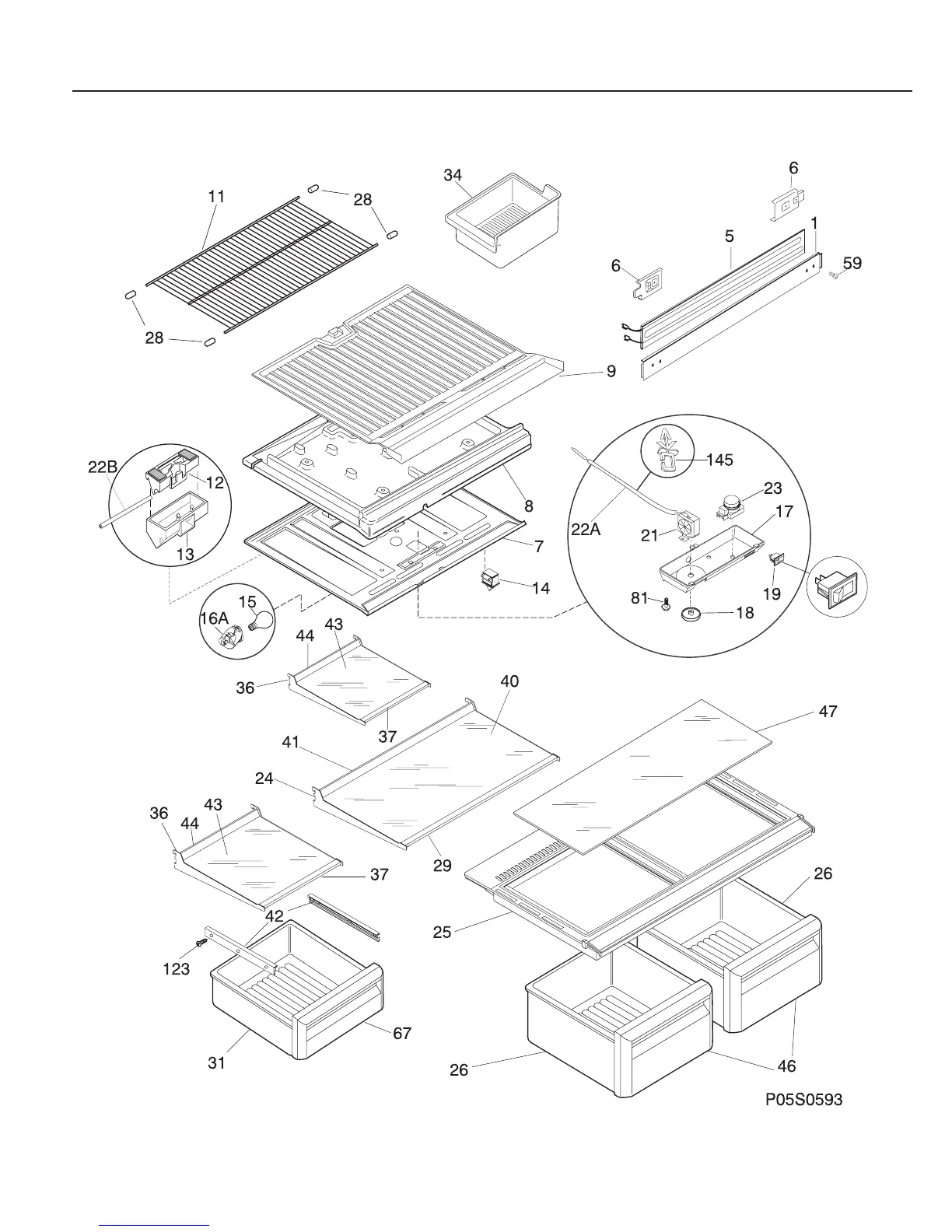 Frigidaire FRT18TRC - Shelves and Interior Storage; Shelves Exploded View Diagram
