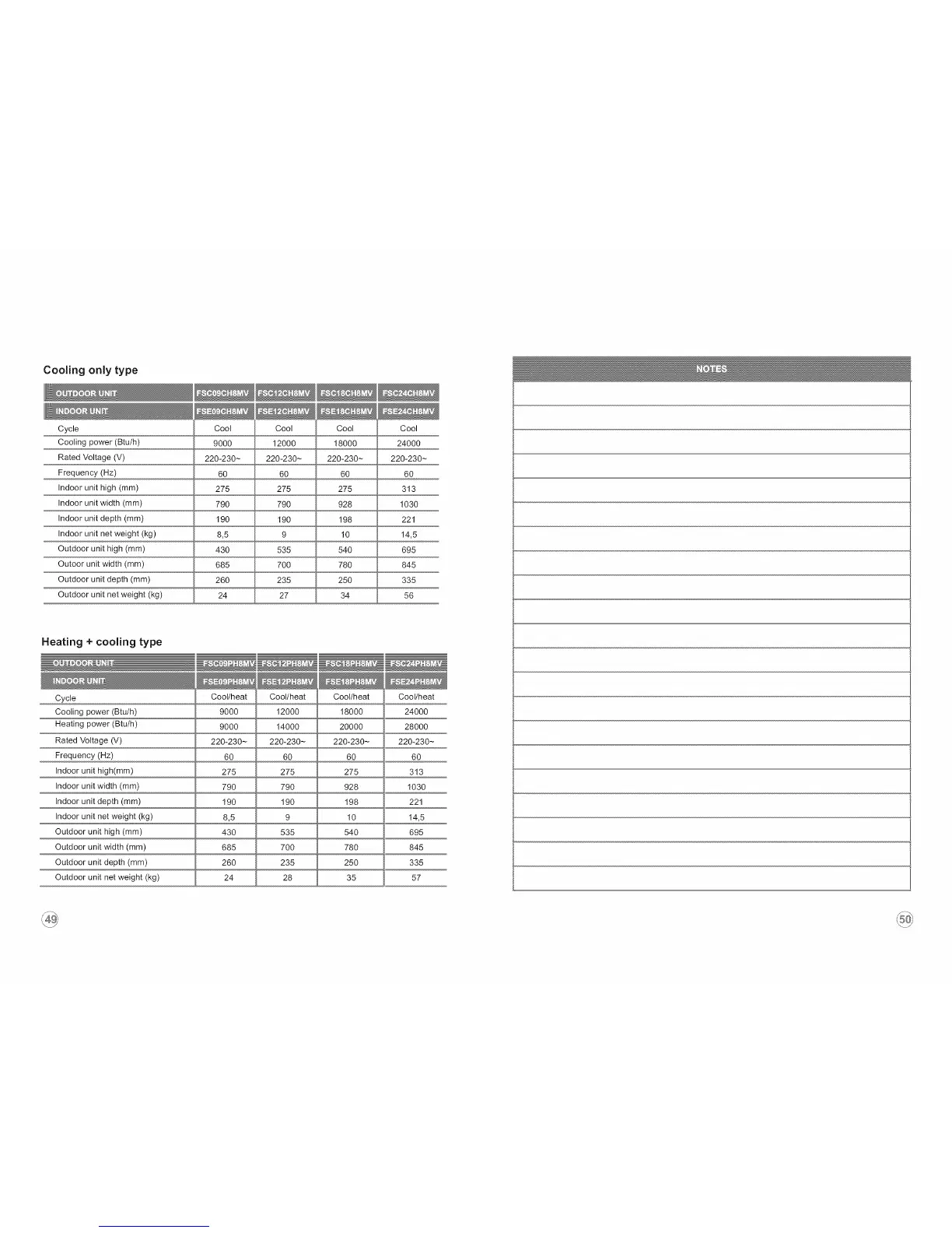 Indoor unit net weight (kg)