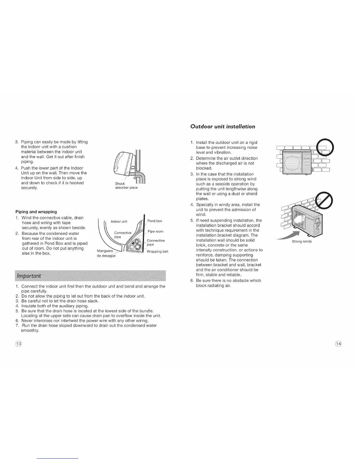 2. Do not allow the piping to let out from the back of the indoor unit.