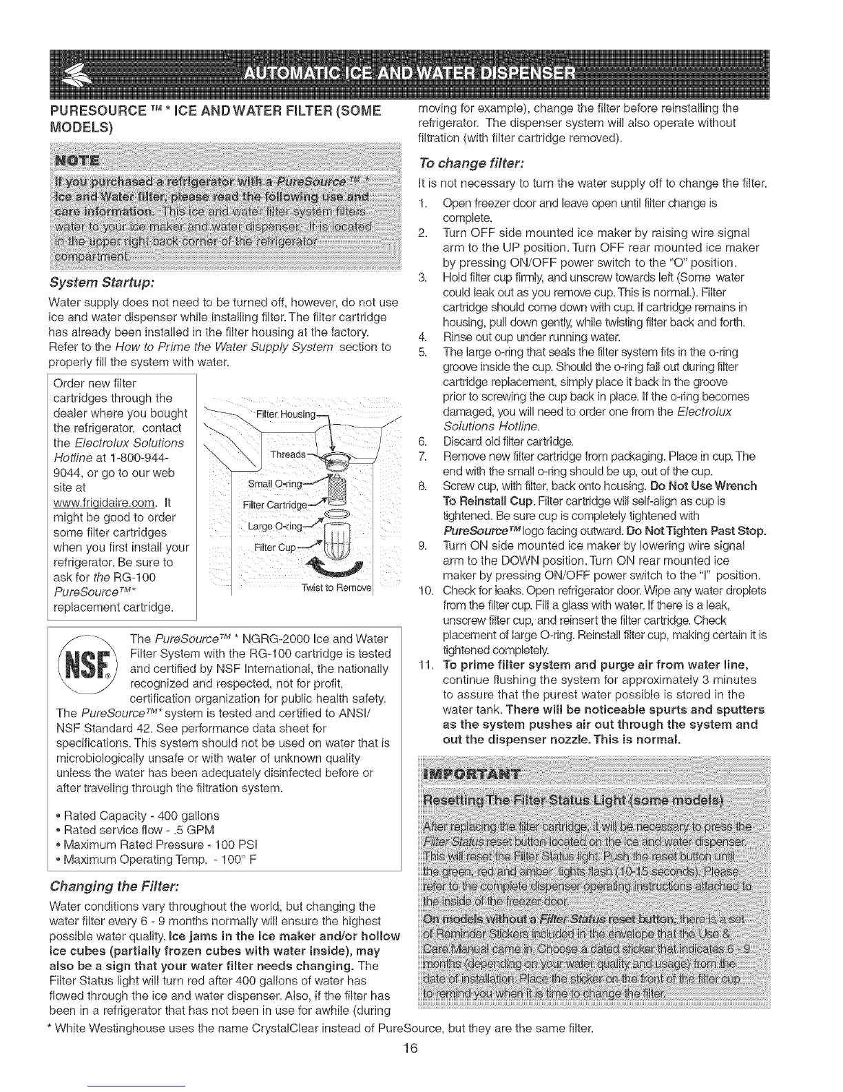The PureSource TM * NGRG-2000 Ice and Water