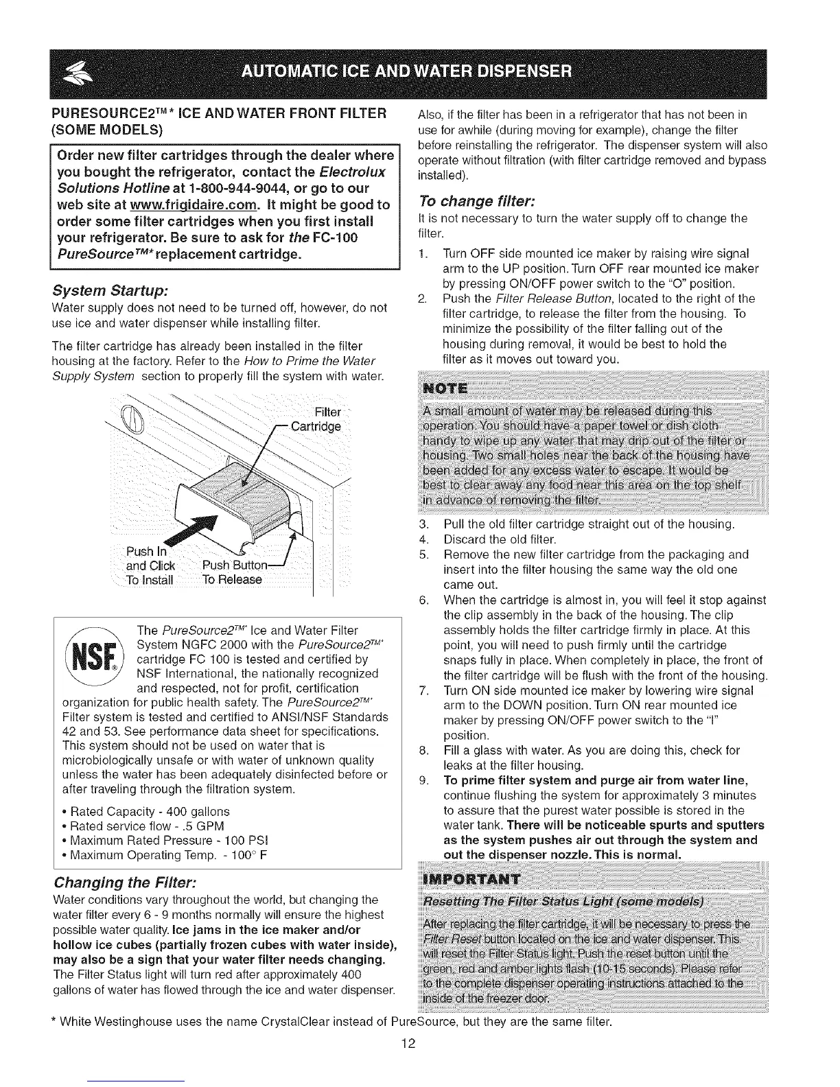 * White Westinghouse uses the name CrystalClear instead of PureSource, but they are the same filter.