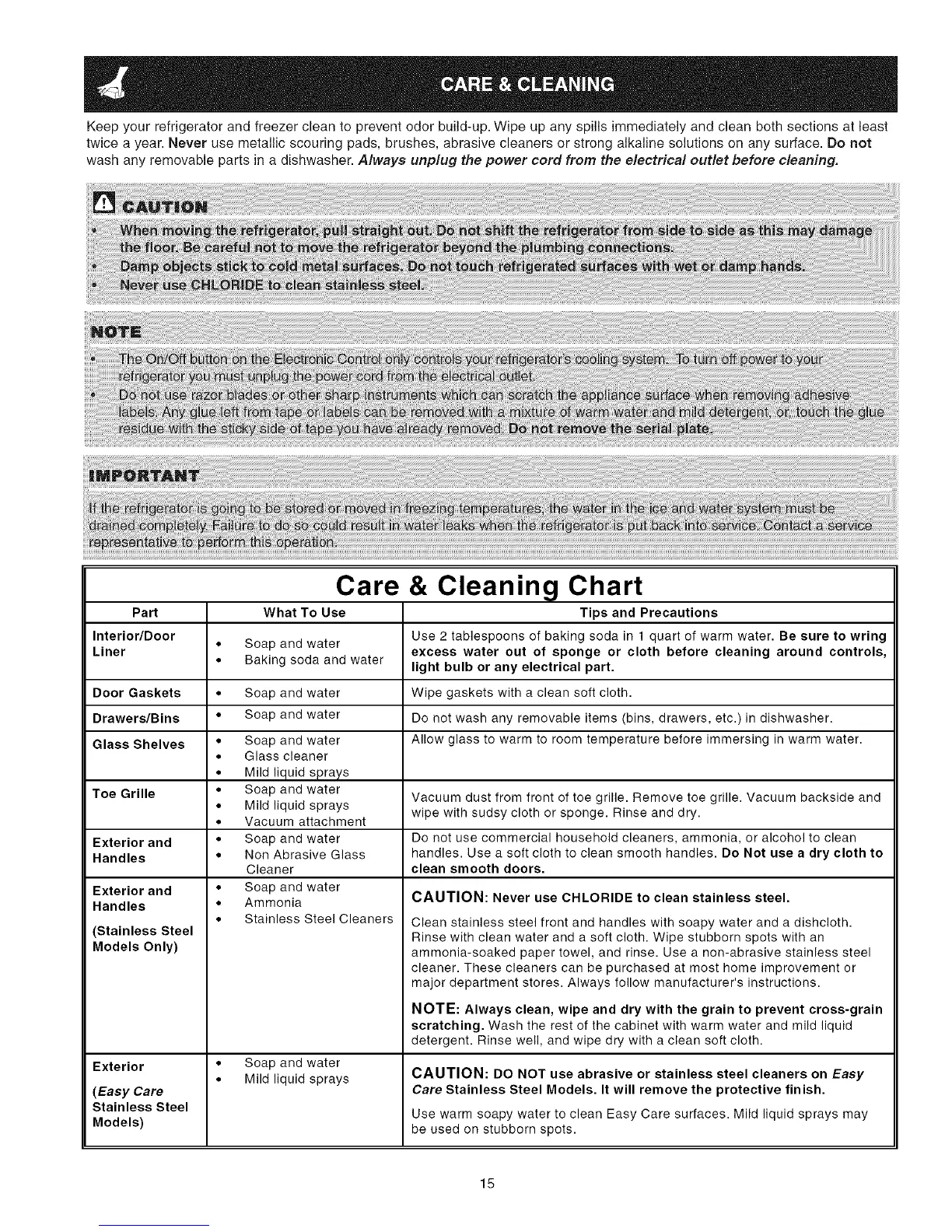 Exterior and CAUTION: Never use CHLORIDE to clean stainless steel.
