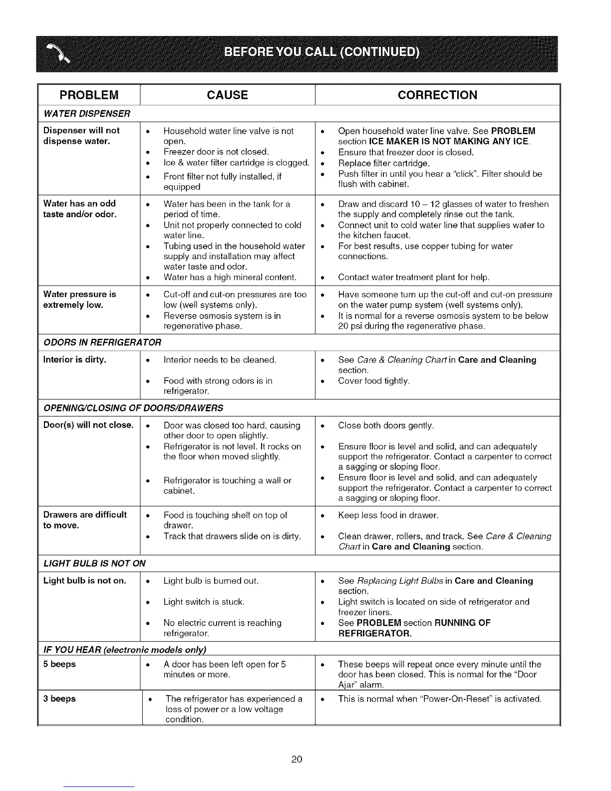 Water pressure is • Cut-off and cut-on pressures are too • Have someone turn up the cut-off and cut-on pressure