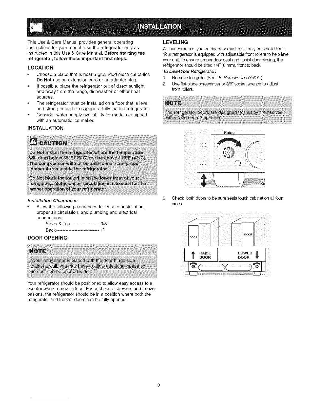 refrigerator should be tilted 1/4" (6 mm), front to back.