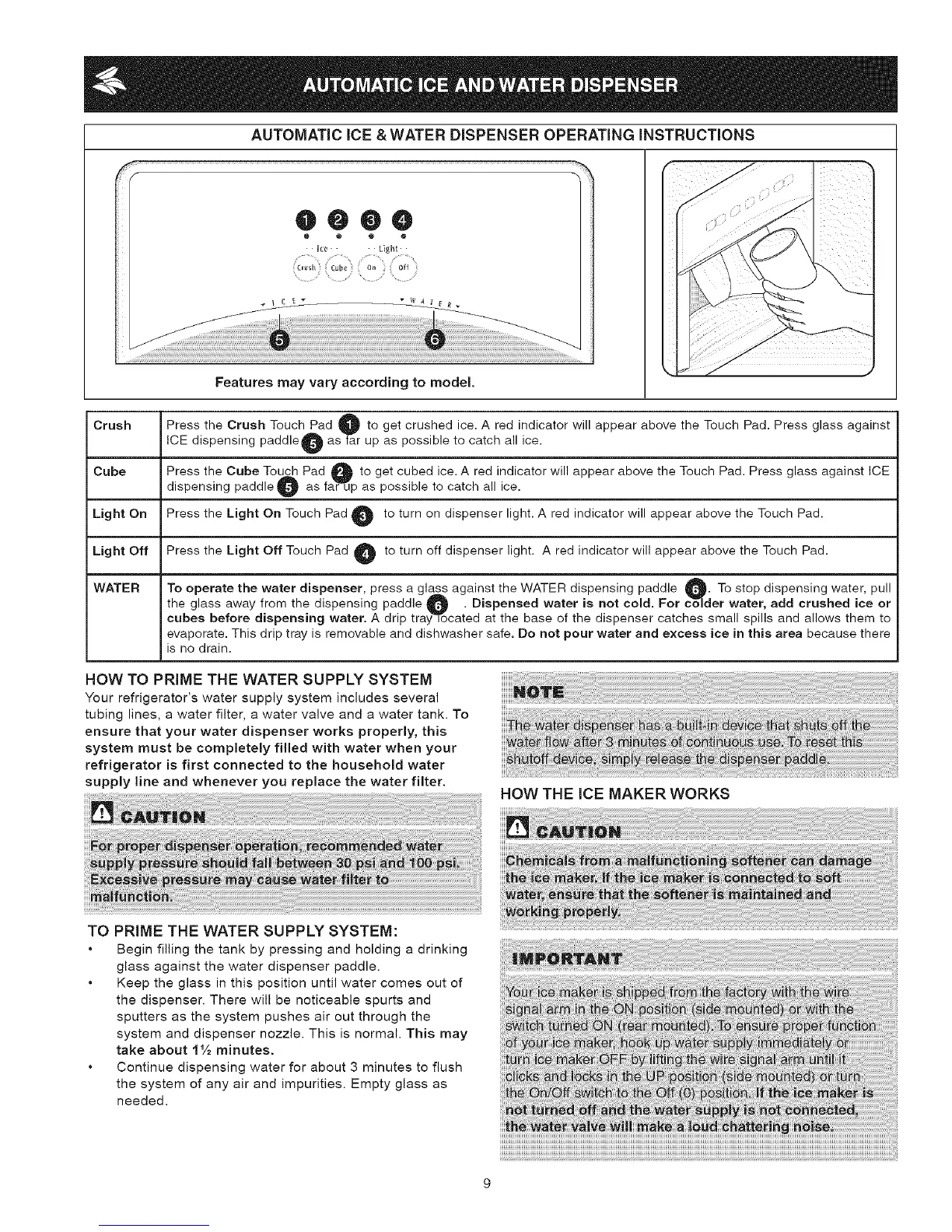 AUTOMATIC ICE &WATER DISPENSER OPERATING iNSTRUCTiONS