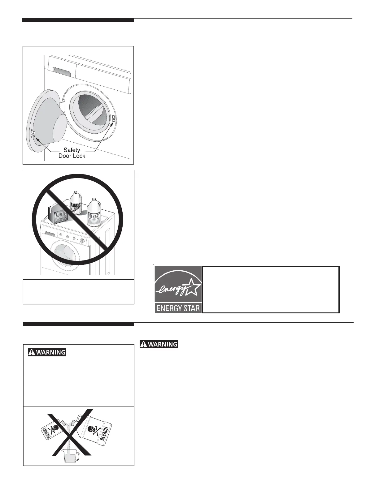 • Do not place detergent, bleach or fabric softener containers on top of the