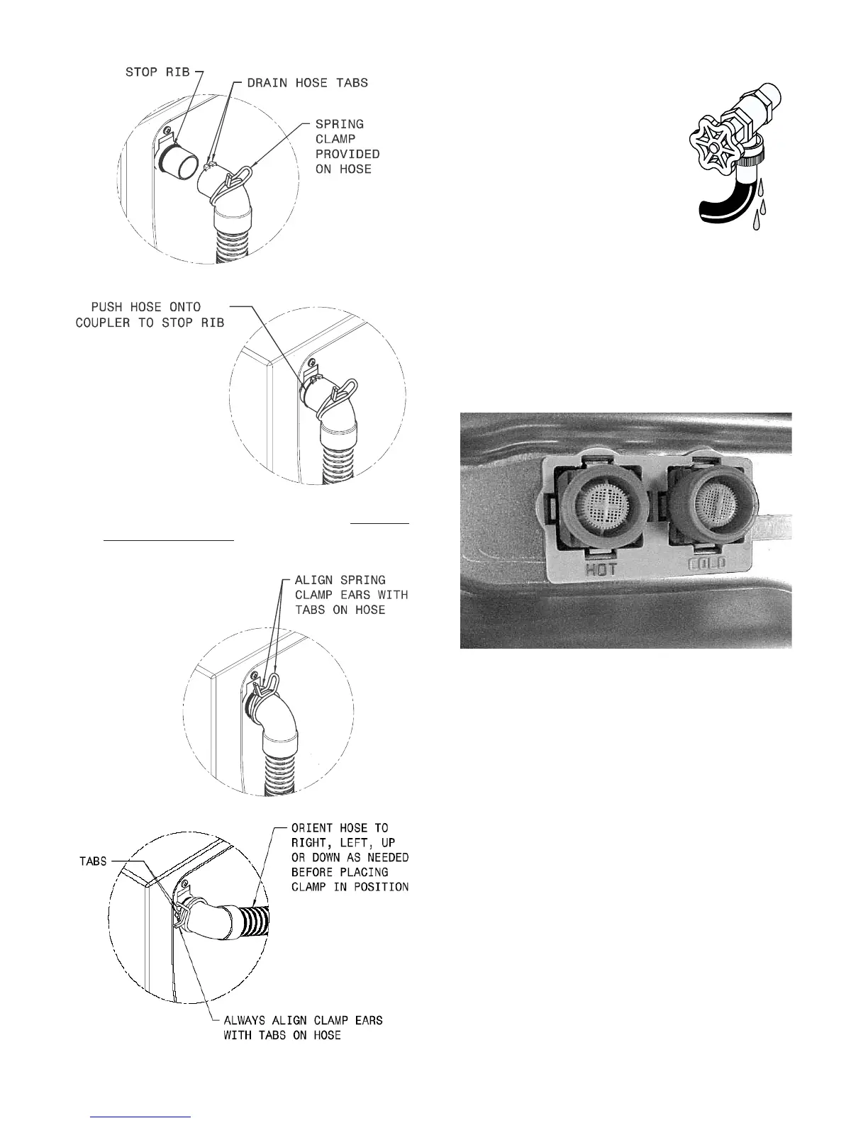 and contact the tabs on the drain hose. This as-