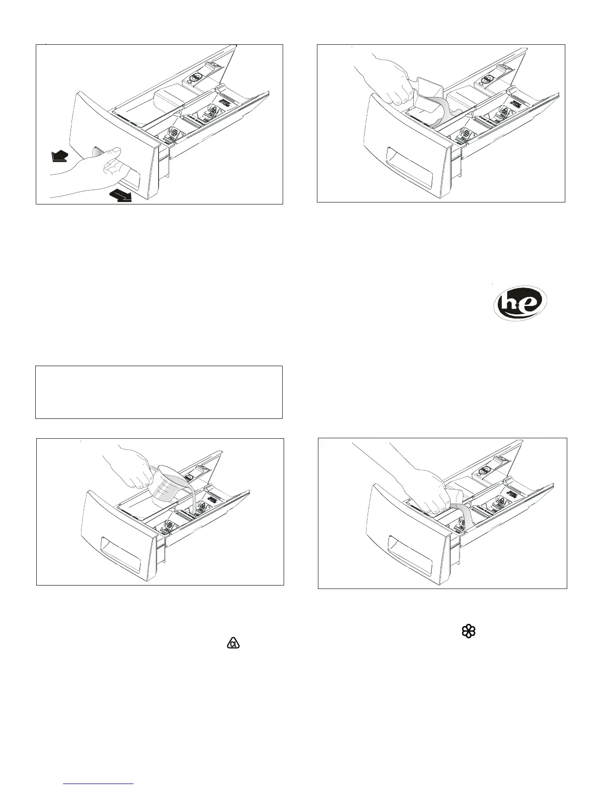 5. Add detergent, bleach and fabric softener to automatic dispenser following these steps: