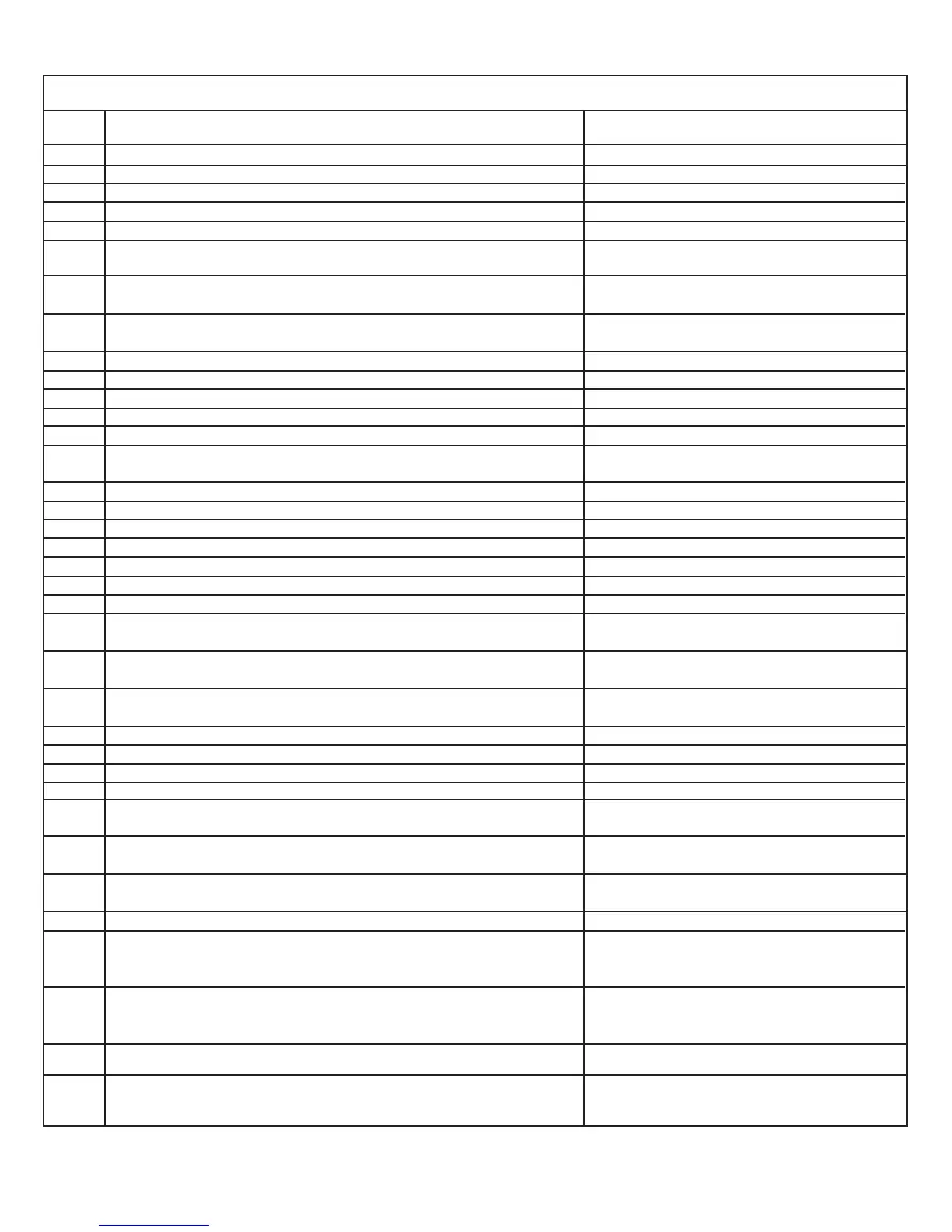 Le tableau de code d’erreur.
