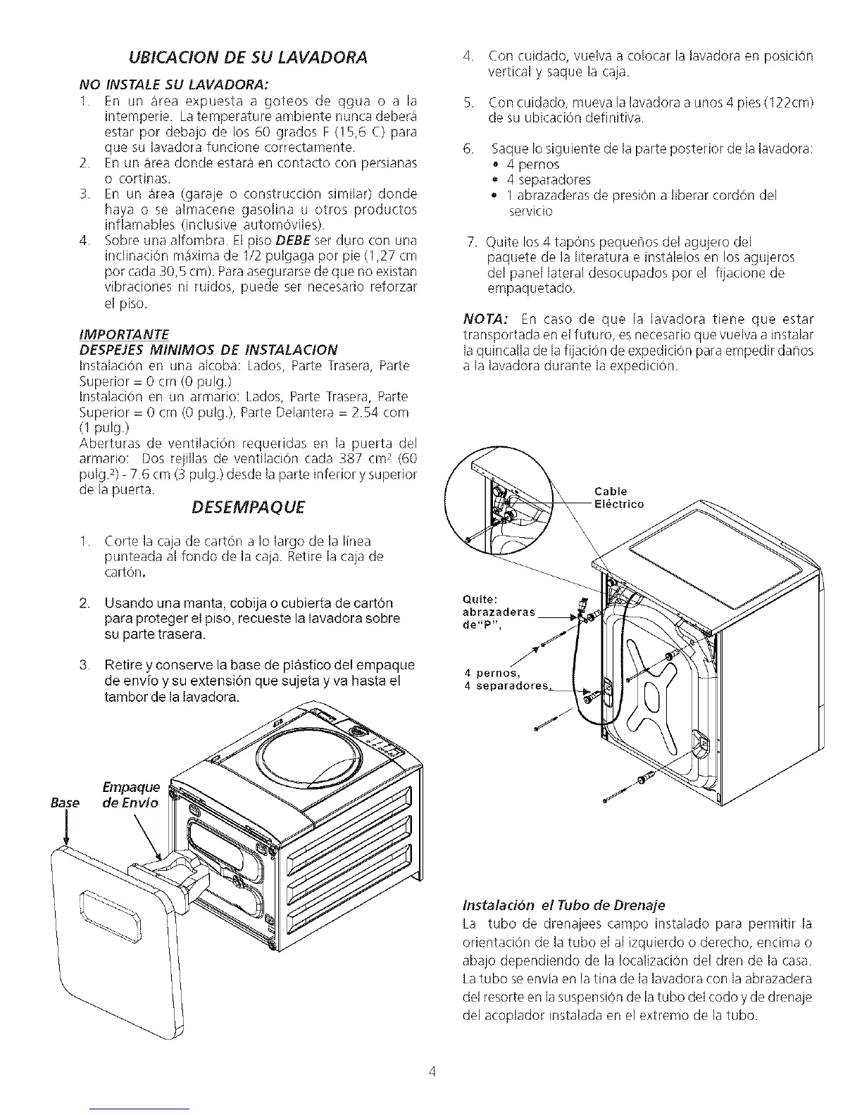 5. Con cuidado, mueva [alavadora a unos 4 pies (122cm)
