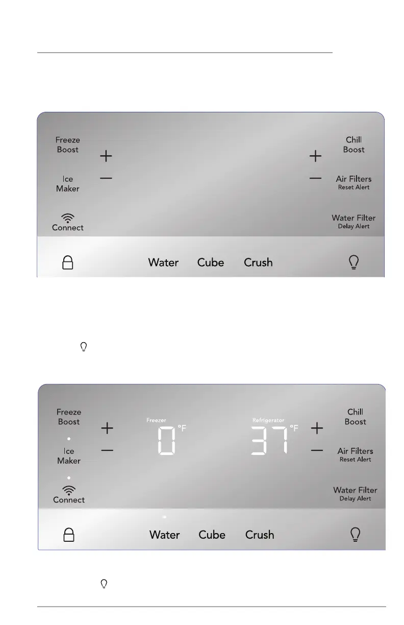 for 5 seconds. Display will show the current temperature/ice maker